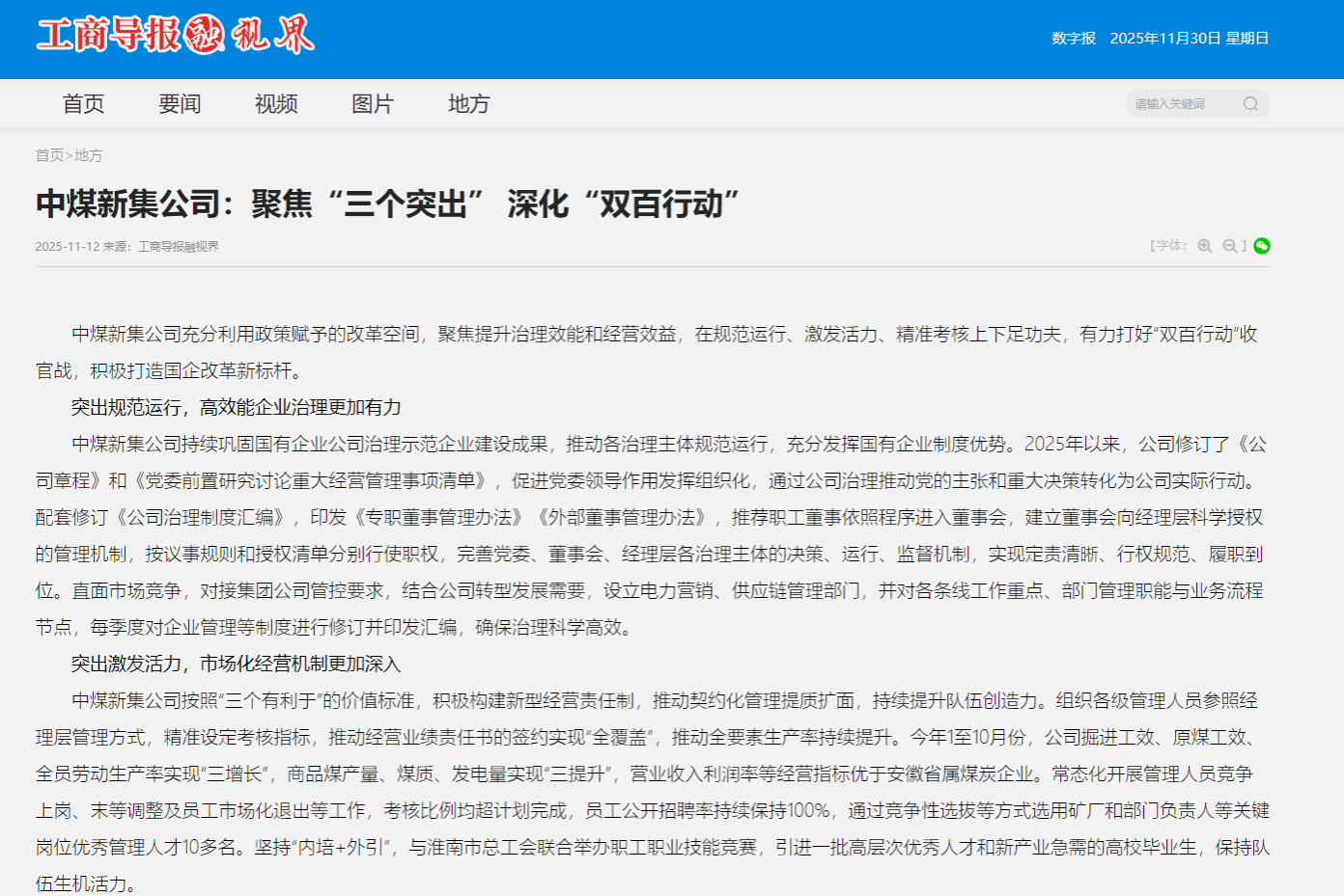 中煤新集公司充分利用政策赋予的改革空间,聚焦提升治理效能和经营效益,在规范运行、激发活力、精准考核上下足功夫,有力打好“双百行动”收官战,积极打造国企改革新标杆。