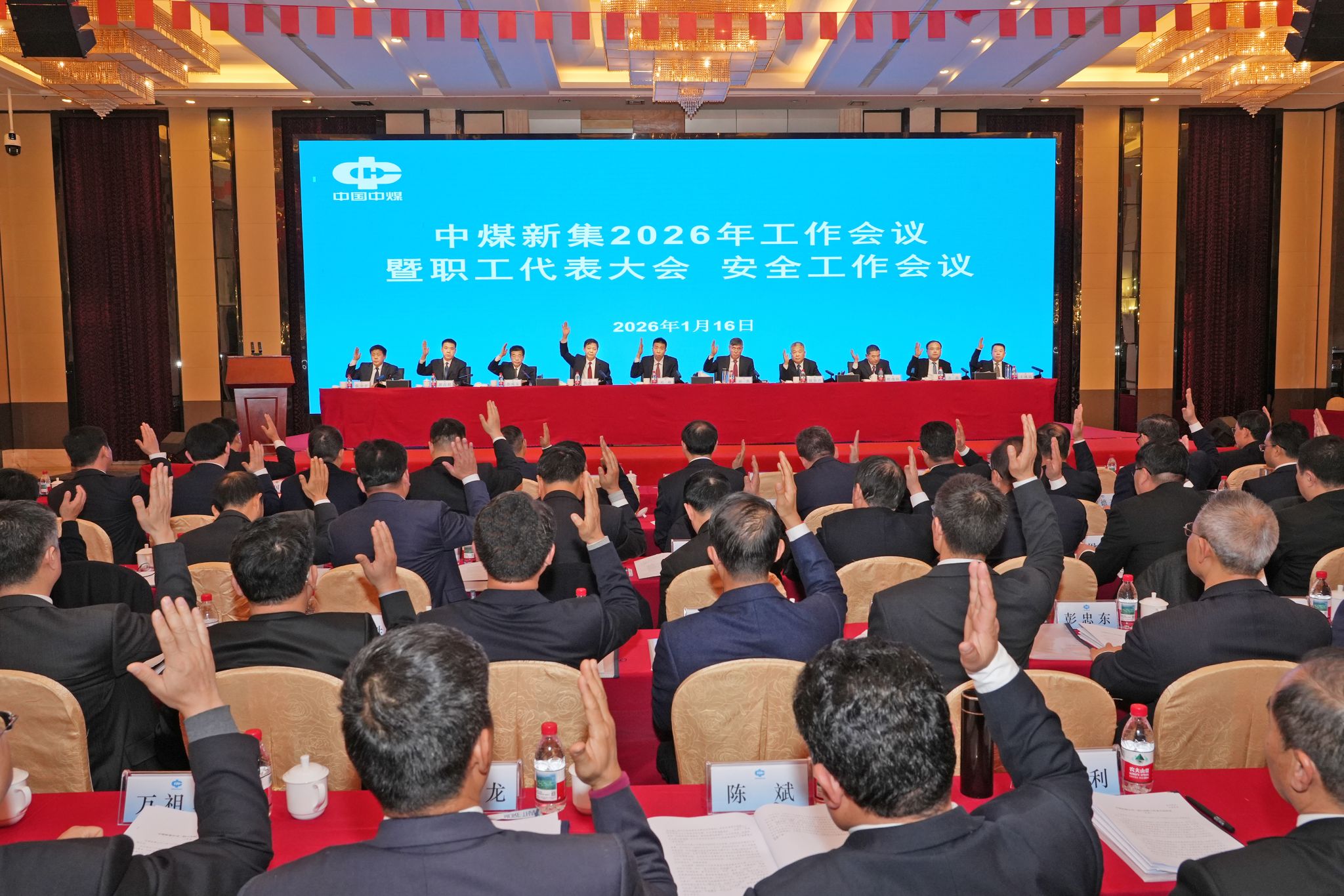 践行中煤使命,绘就新集辉煌。1月16日,公司2026年工作会议暨职工代表大会、安全工作会议在新集宾馆多功能厅召开。会议总结回顾公司2025年各项工作和“十四五”工作开展情况,分析研判当前形势,部署2026年重点任务。公司党委书记、董事长刘峰作总结讲话,党委副书记、总经理孙凯作2026年工作会议暨职工代表大会工作报告,安徽分公司党委副书记、总经理,公司党委委员、副总经理张学锁传达集团公司2026年工作会议精神并主持公司工作会议,党委副书记钱德兴作公司党建工作报告,党委委员、工会主席孙成友主持公司职工代表大会,党委委员、纪委书记郭吉鹤通报公司2025年度综合考核情况;党委委员、副总经理万磊作公司安全生产工作报告,公司领导程茂玖、张全平、王绪民出席会议。