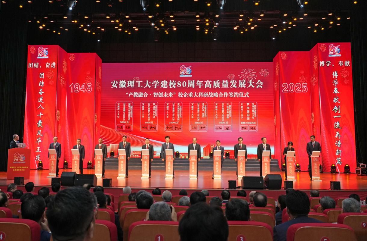 10月6日,安徽理工大学建校80周年高质量发展大会在淮南本校区举行,中国中煤党委常委、副总经理、总工程师马世志出席,并与安徽理工大学党委书记郭永存沟通交流。公司党委委员、副总经理万磊参加大会并代表新集公司签订合作协议。