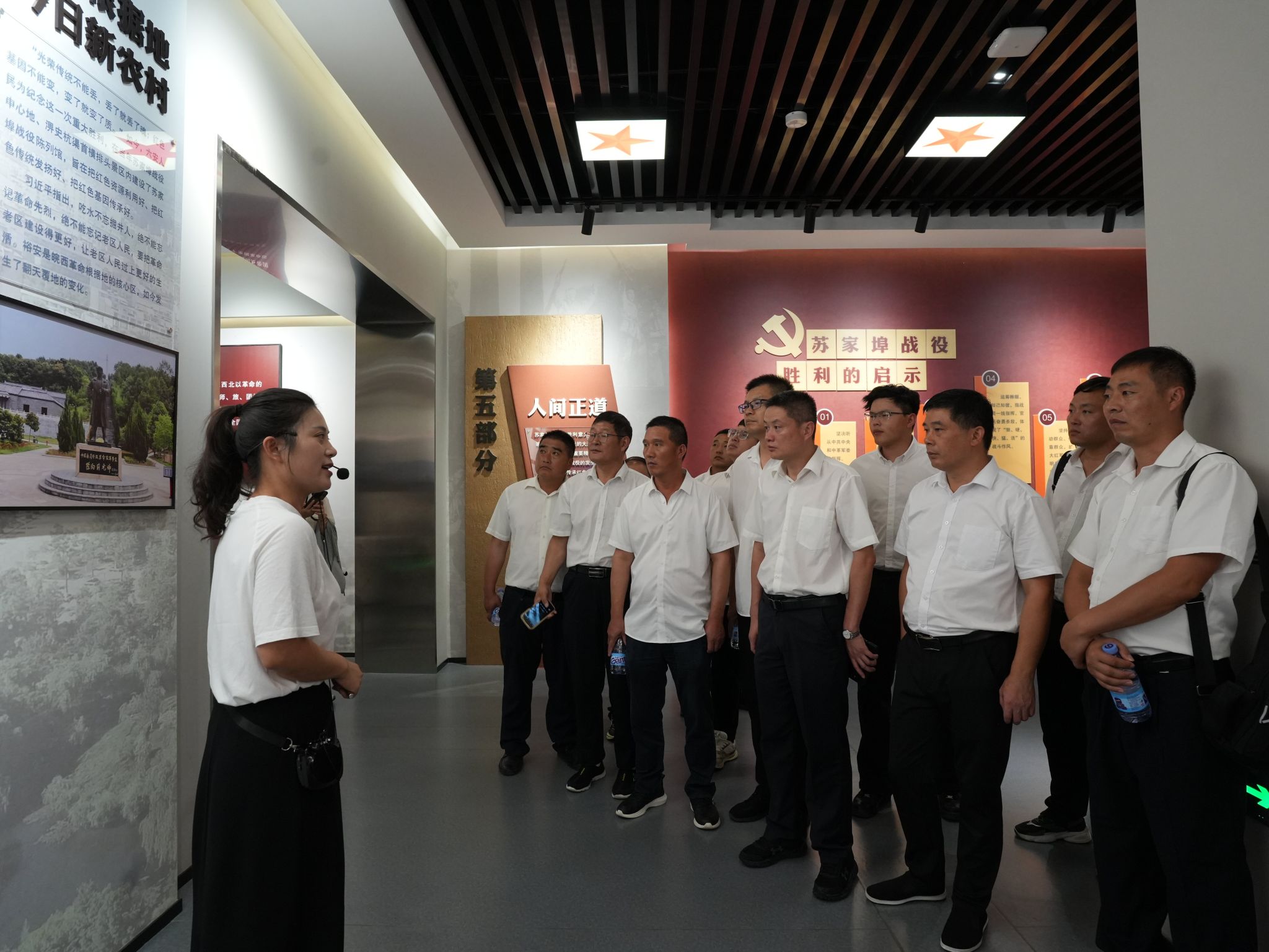 29日上午,学员们有序走进苏家埠战役陈列馆,仿佛穿越时空,置身于那个战火纷飞的年代。馆内陈列的珍贵文物、历史图片以及详实史料,生动且全面地展现了苏家埠战役的全过程。在讲解员饱含深情的讲述中,学员们了解到苏家埠战役是鄂豫皖苏区第三次反“围剿”中的关键一役,红军以少胜多,歼敌三万余人,取得了辉煌胜利。革命先烈们在枪林弹雨中舍生忘死、浴血奋战,他们坚定的革命信念与英勇无畏的精神,深深震撼着每一位学员。