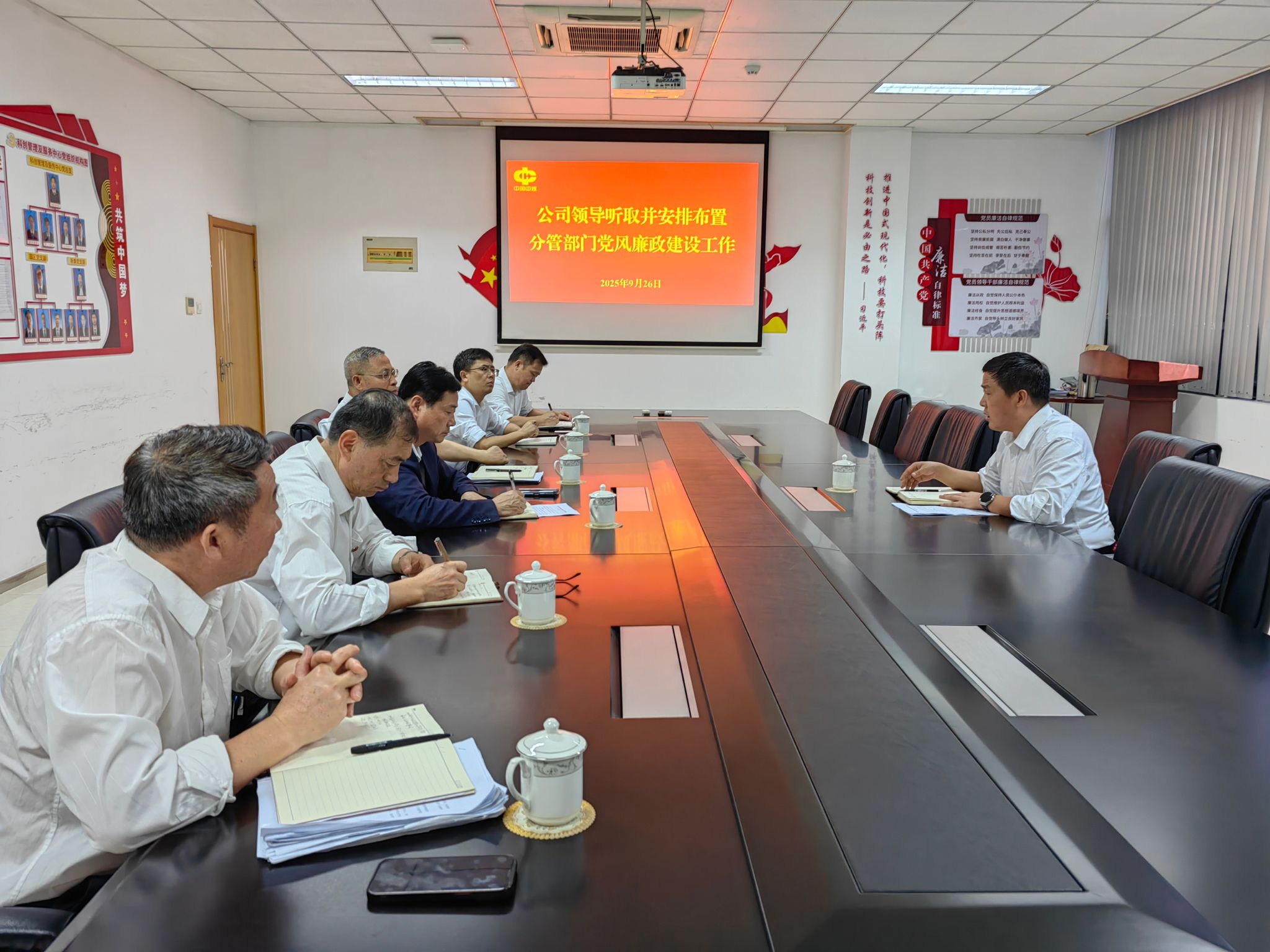 9月26日,公司党委委员、总工程师张全平主持召开专题会议,听取分管部门和单位全面从严治党及党风廉政建设工作汇报,并对负责人开展集体廉洁谈话。公司地测水文部、科创中心负责人和相关人员参加会议。