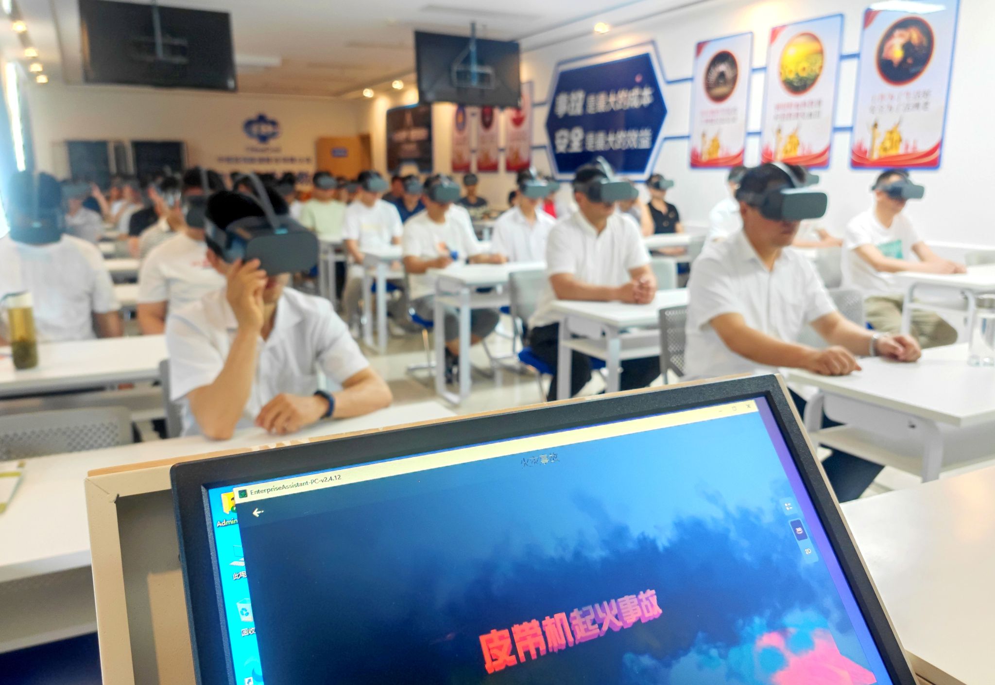 五年来,培训中心累计完成“三项岗位人员”安全培训超6000人次,煤矿班组长培训超5000人次,安全复训覆盖率、参培率、合格率、持证率连续五年保持100%,真正实现“人人持证、技能在岗”。同时,聚焦“关键少数”,持续深化安全管理新知识、新技术、新工艺、新方法培训,将基础教学与前瞻性理论融为一体,不断提升安全管理人员业务能力和管理水平。2024年,投入近百万元,完成三个信息化教室改造和一个体感教室的招标采购,通过高清交互大屏、板书与电子资料无缝切换、虚拟现实和实物仿真新技术,为员工营造身临其境的模拟仿真空间,通过沉浸式、体验式的教学手段提升职工学习兴趣,改善培训效果,实现安全意识教育入脑入心,切实提升职工技能素质。