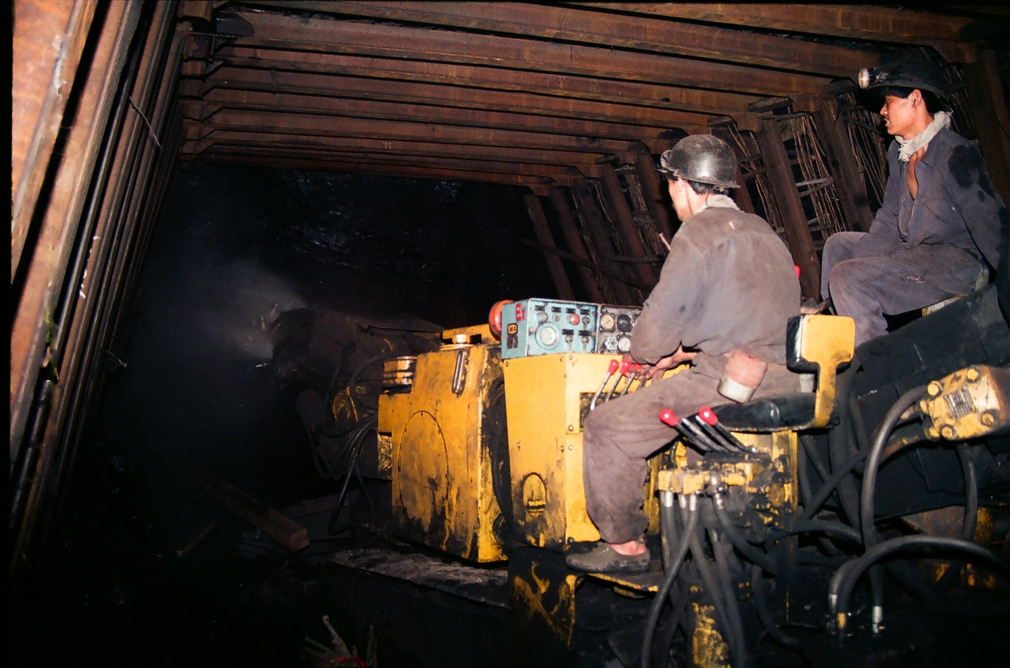 投产初期,矿井的生产作业还带着浓厚的“人工印记”,综采队职工们身着沾满煤灰的工装,头戴简易矿灯下井作业,巷道掘进依赖炮掘工艺,工人打眼、放炮、出矸,不仅效率低下,劳动强度更是极大。但就是在这样的条件下,二矿人靠着一股子韧劲,一步步夯实生产根基。1998年,矿井率先启动ISO质量管理体系贯标,成为安徽省煤炭系统首家通过ISO9002质量体系认证的企业,用规范化管理为发展护航。此后又攻克1上煤开采技术,开创两淮矿区1煤安全开采的典范,让矿井产能稳步攀升。