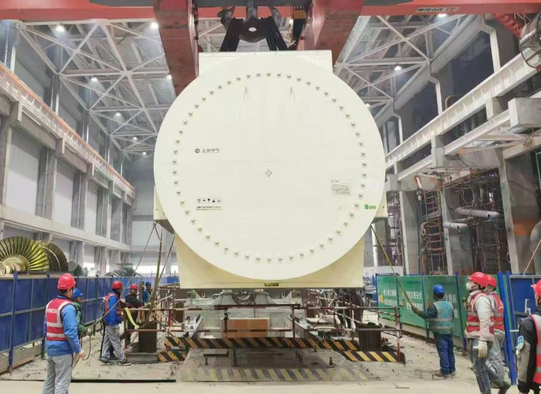 12月20日,六安能源2号机组的核心设备发电机定子吊装就位,标志着六安能源项目两台机组的发电机定子均已成功就位。