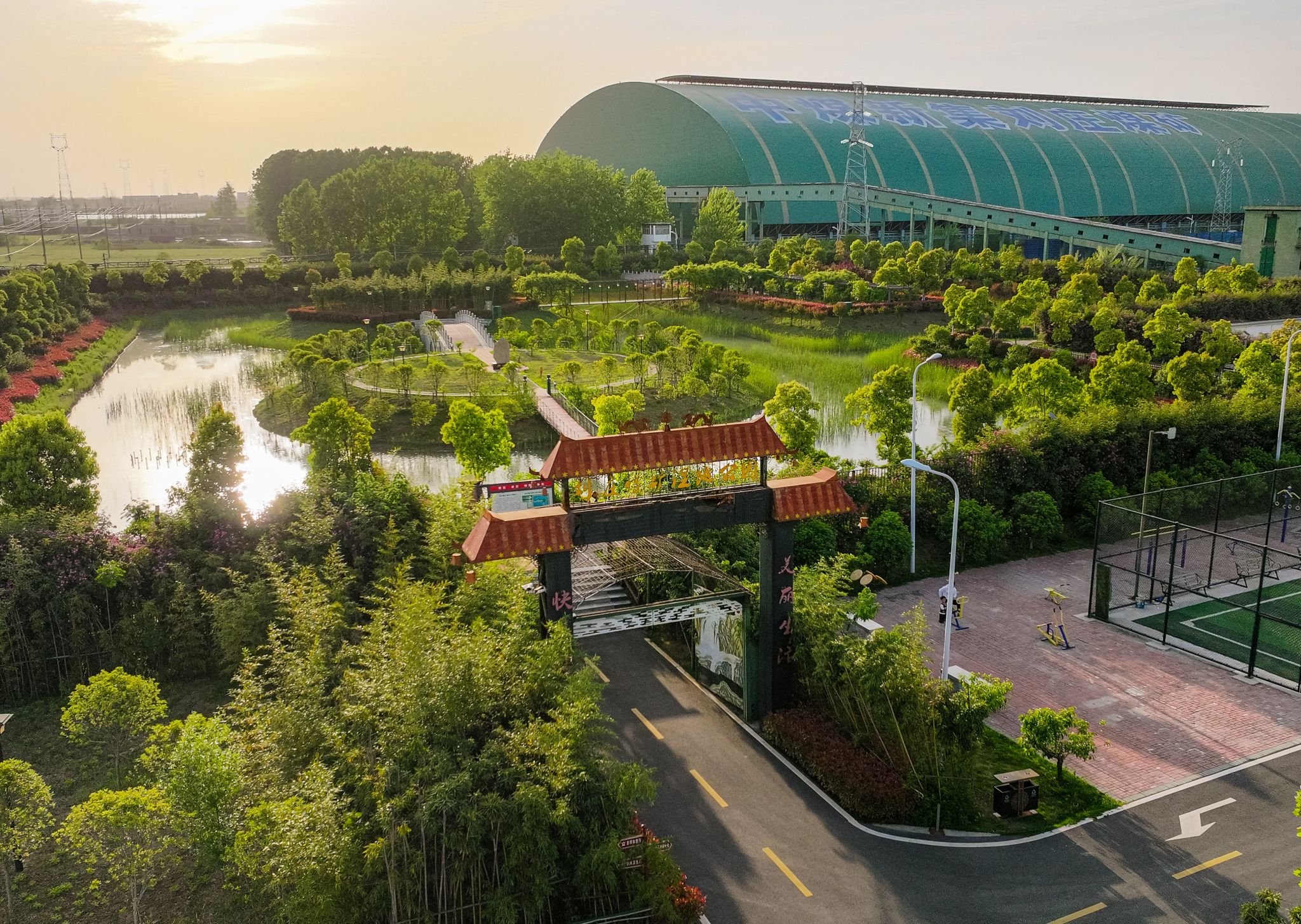 而在矿区中心,一幅更生动的绿色图景已然铺展。曾经“灰头土脸”的矸石山,如今也换了新颜——通过平整、覆土绿化,种植花草树木,修建“久久平安亭”,这里变成了矿井的“绿色后花园”。建成占地2.26万平方米的生态环境治理基地,同心岛、慈善岛、和谐家苑等景观与文峰廊桥、玻璃栈道相映成趣,因“矿在园中、路在林中、人在景中”的诗意,成为户外直播、抖音打卡的“网红地”。