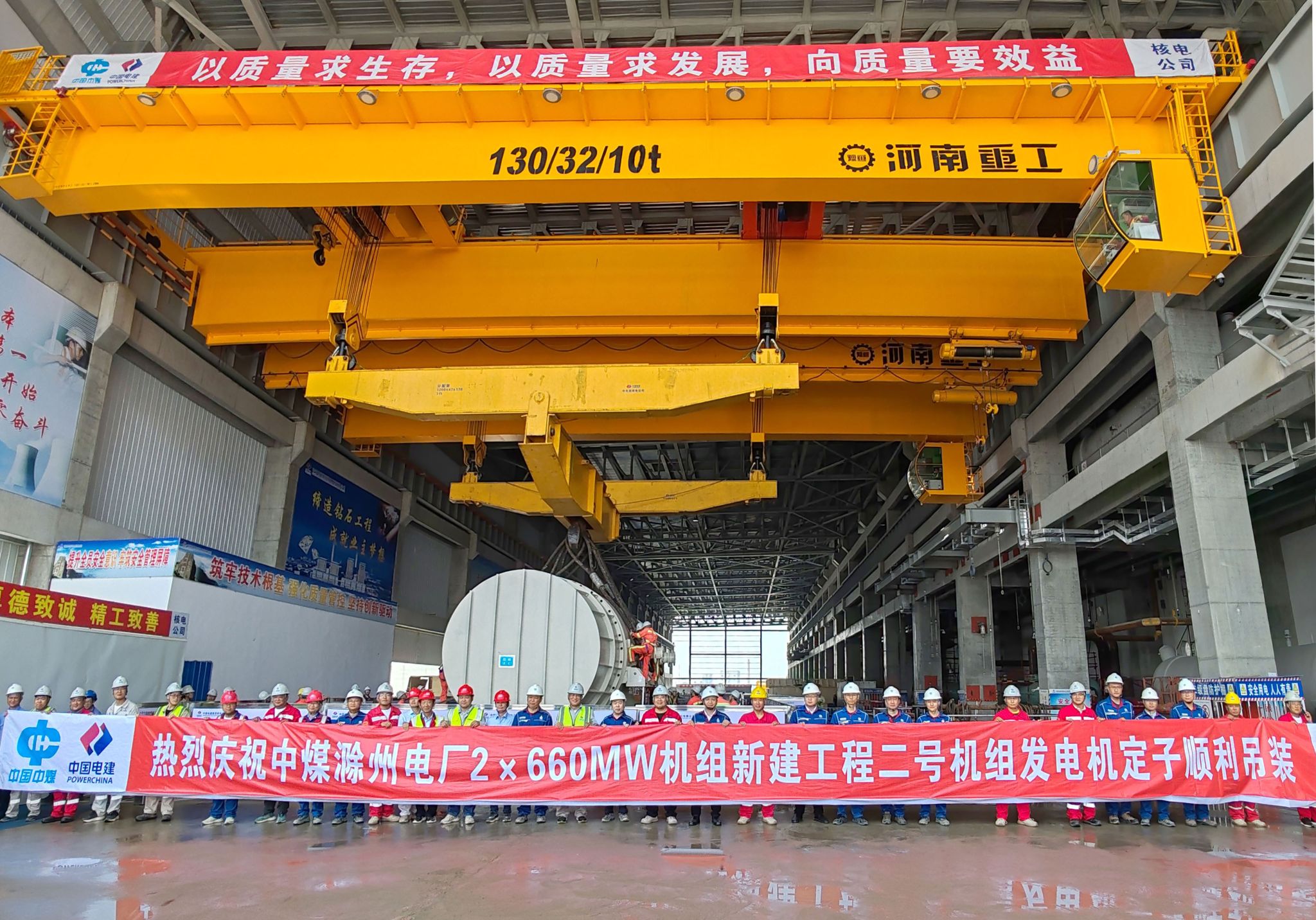 图六:2025年6月3日,滁州发电2号机组发电机定子顺利吊装。