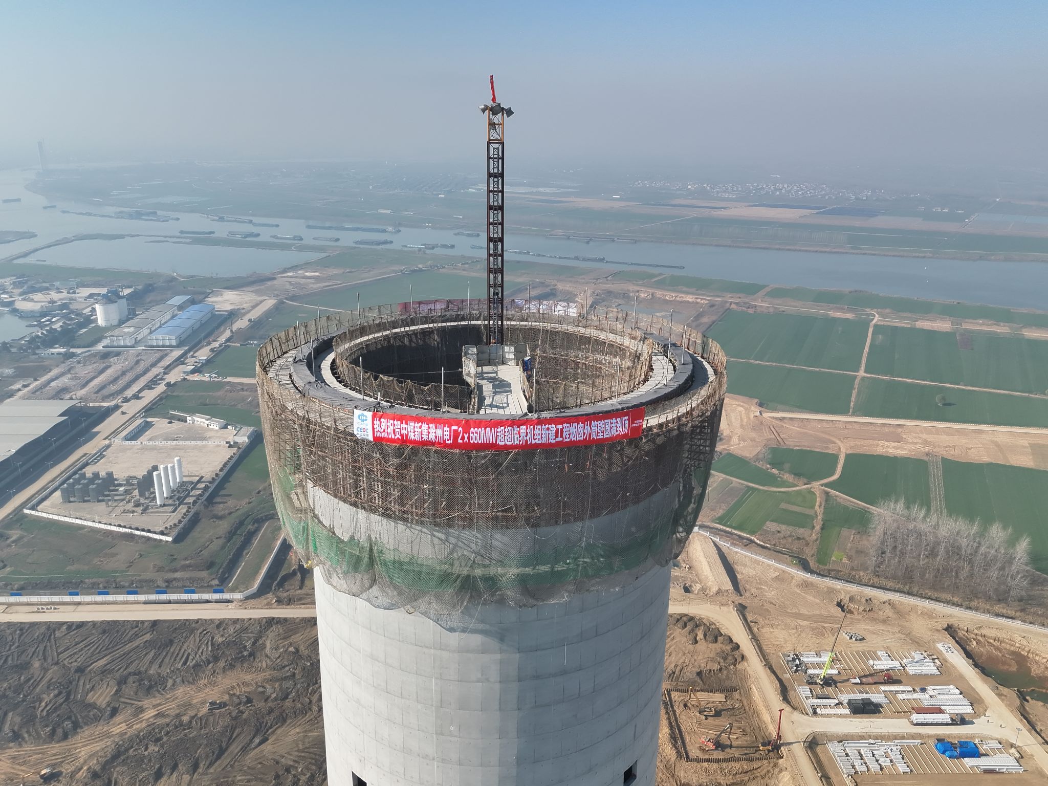 图四:2024年12月16日,滁州发电烟囱外筒壁到顶。