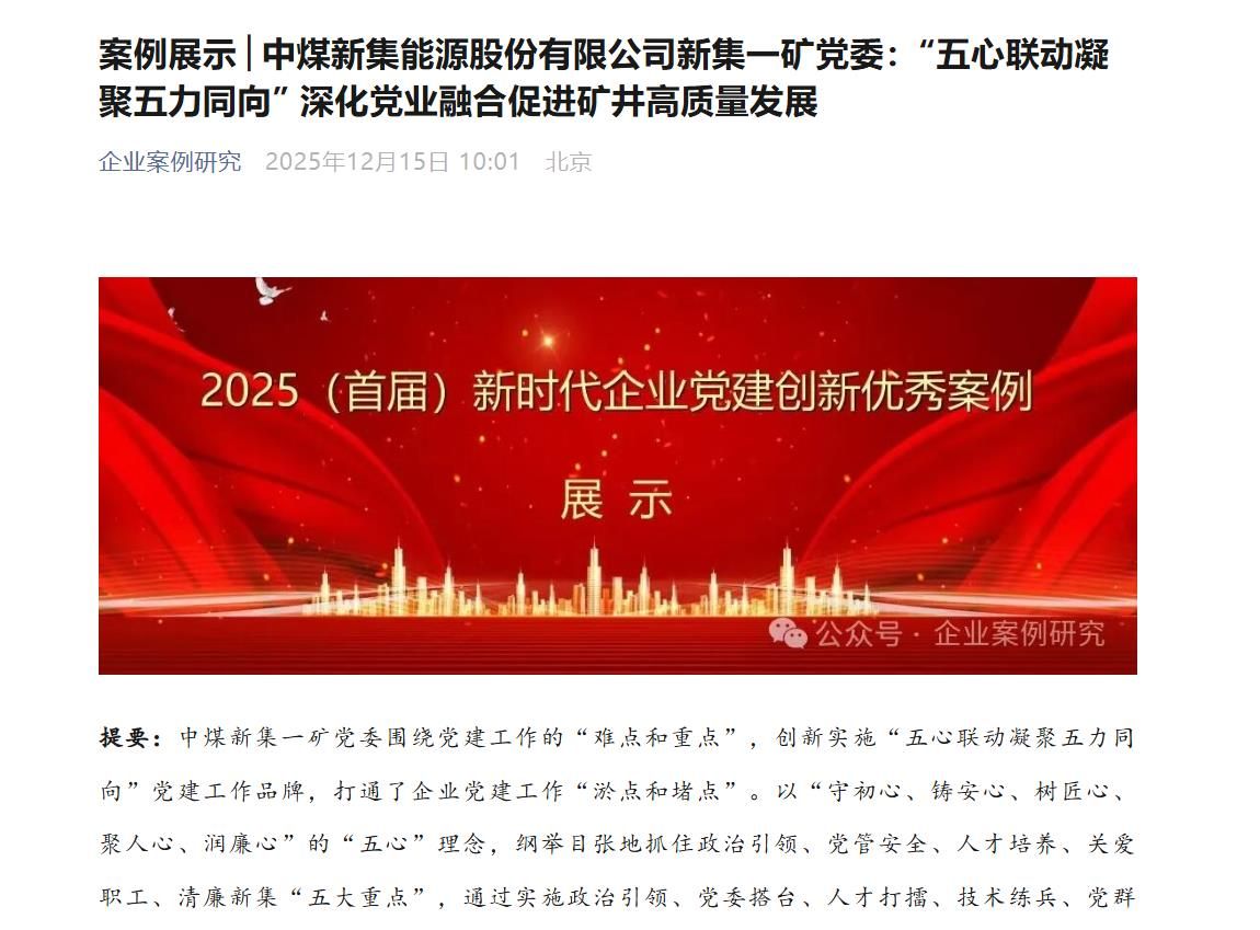 新集一矿将党建工作与生产经营深度融合,以“融党建”激活发展活力,引领全员凝聚起攻坚克难、创新发展的强大合力。