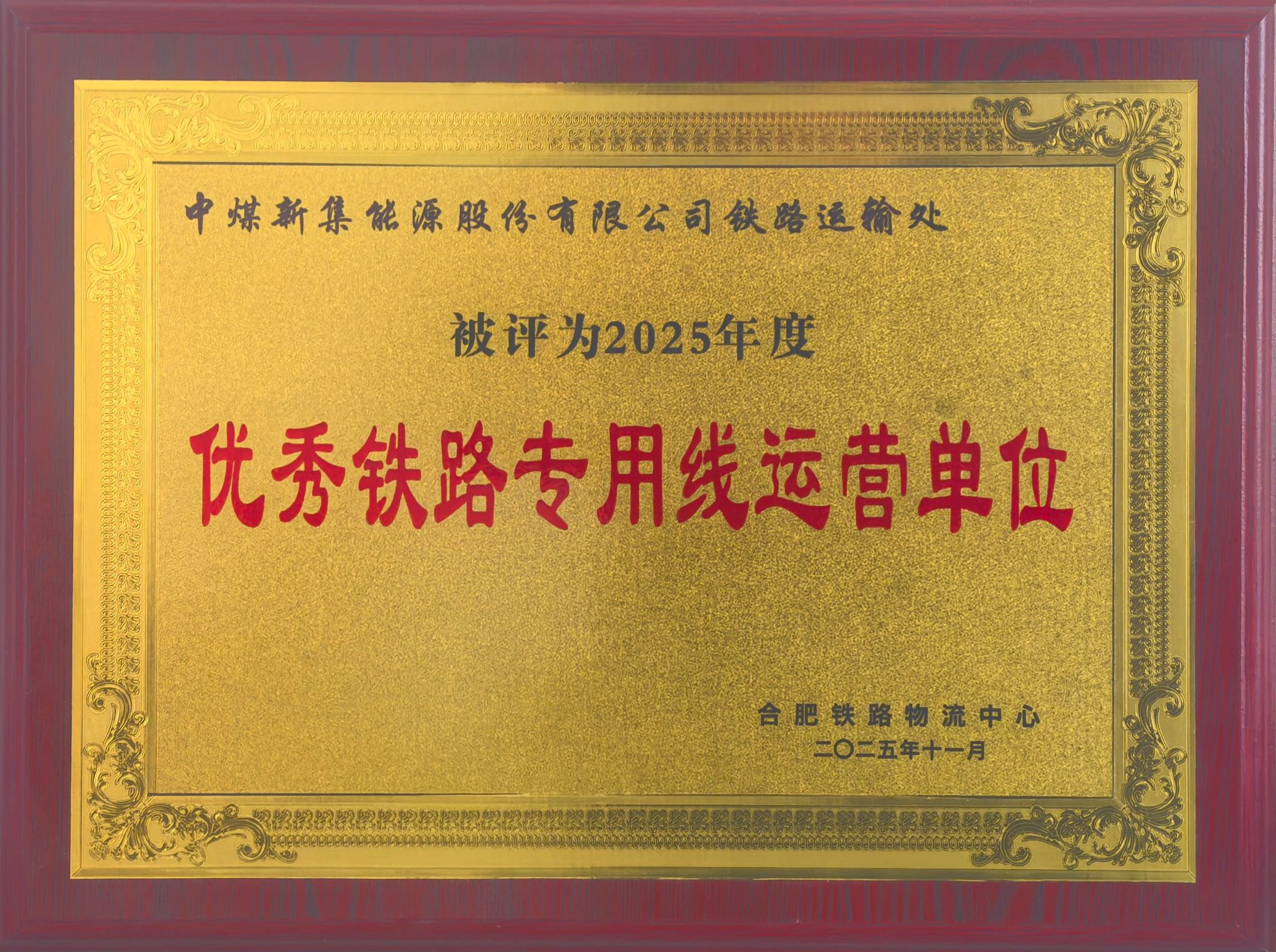 2025年,铁运公司锚定高质量发展目标,紧扣“保安促运、提质增效”工作要求,迎难而上、聚力攻坚,圆满完成全年能源保供运输任务,在安全生产、运输效能、智慧运营、民生福祉等多领域实现协同提升,取得扎实成效。获评中国铁路上海局集团合肥物流中心年度“优秀铁路专用线运营单位”称号。