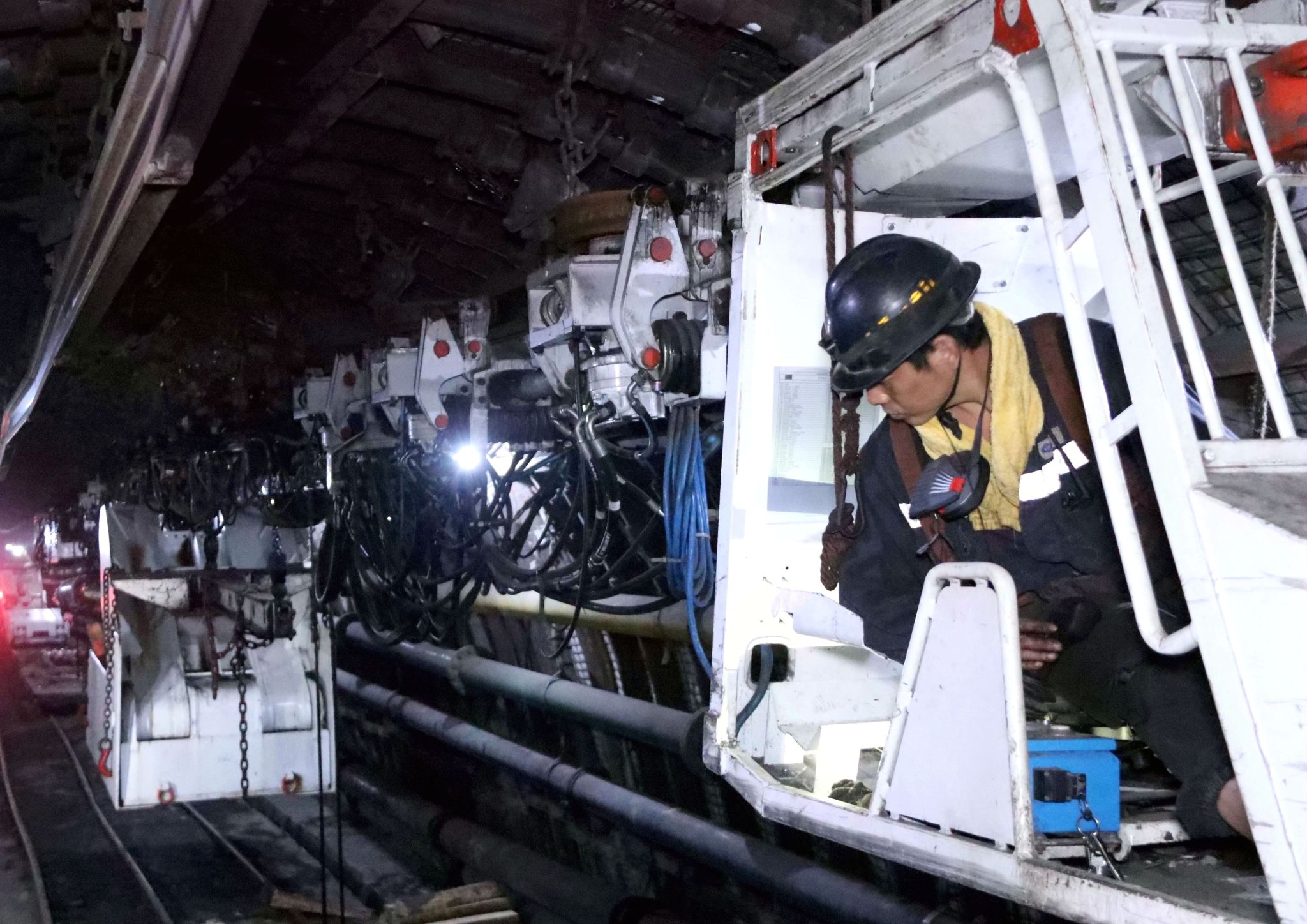 与此同时,在111101接续工作面切眼刷扩现场,综安一队队长孙自社满身油污,正有条不紊地指挥“边刷边安”作业。“9米跨度的大断面刷扩,在过去是想都不敢想的挑战。”孙自社感慨道。他带领职工严格落实台阶法刷扩、锚索吊梁加强支护等工艺标准,同步安设顶板离层仪开展实时矿压观测,动态调整注浆补强方案,精准化解顶板漏冒风险。目前,该队正以日均安装6架的高效进度稳步推进作业,为工作面按期投产抢占了宝贵时间。
