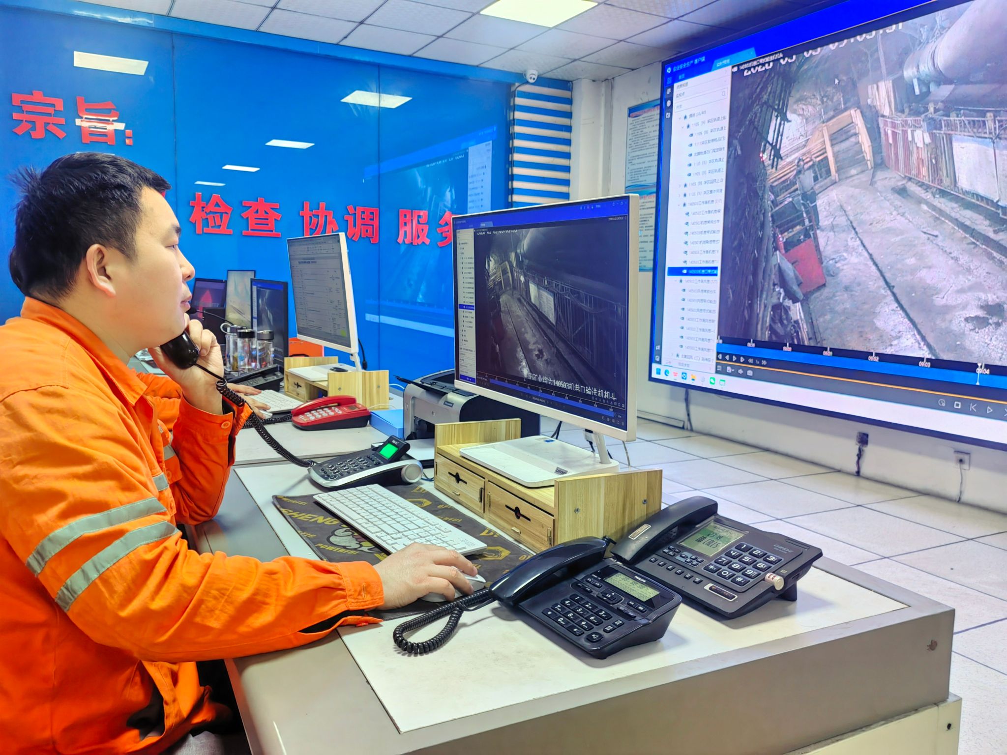 “等等!”葛启才突然定格在一个画面。画面中,单轨吊机车通过时,皮带机司机离开操作岗位前没有停机,这种细节上的松散往往是导致事故发生的前兆。葛启才没有犹豫,立即拿起远程语音话筒:“喂,您好,现在单轨吊机车正在运行,请你立即停止皮带机运行,退到安全地点躲避。”画面中的职工愣了一下,抬头看了看摄像头的方向,随即比了个“OK”的手势,麻利地按照流程操作到位。