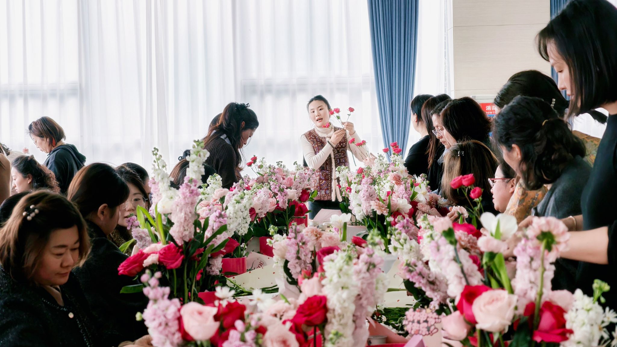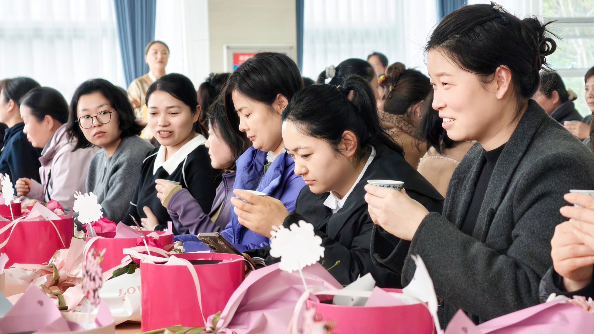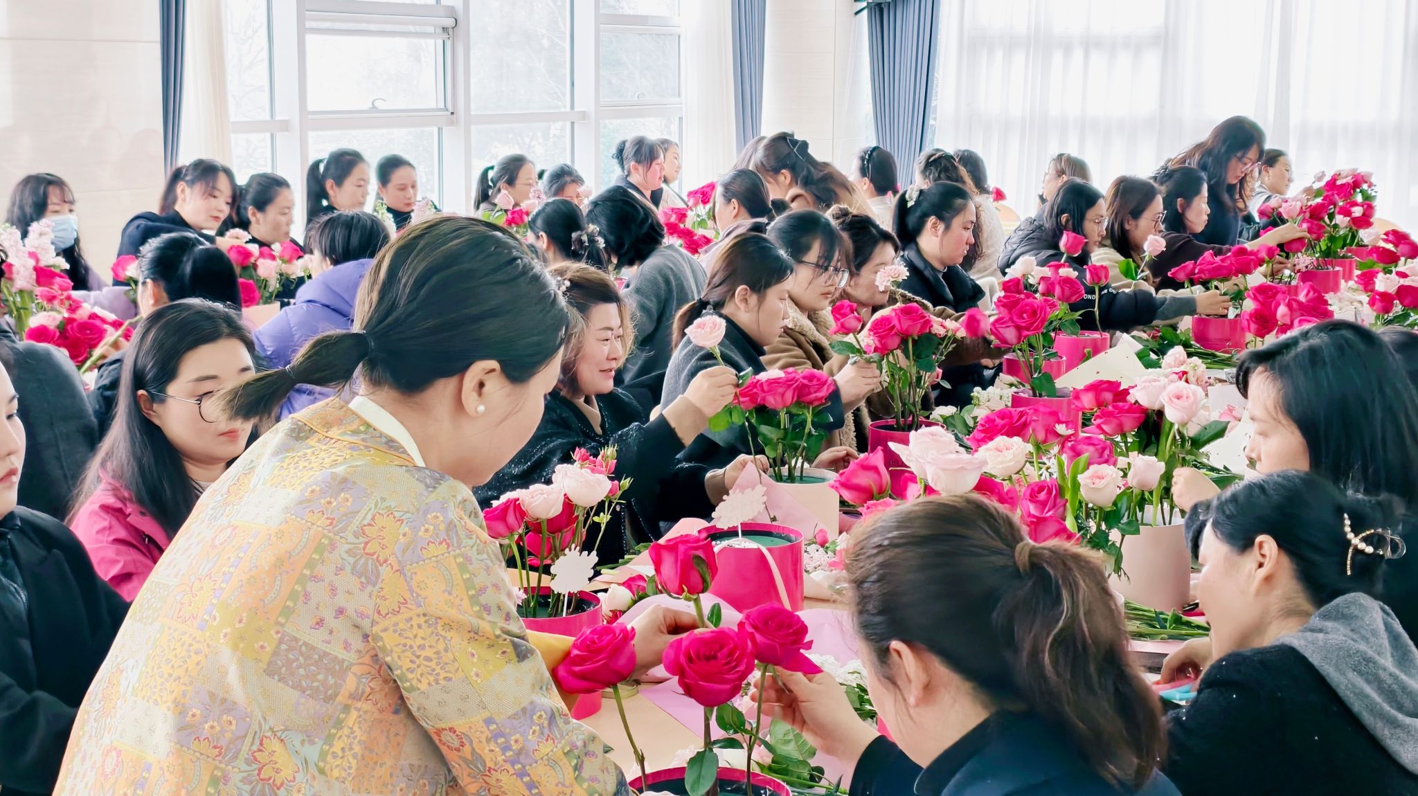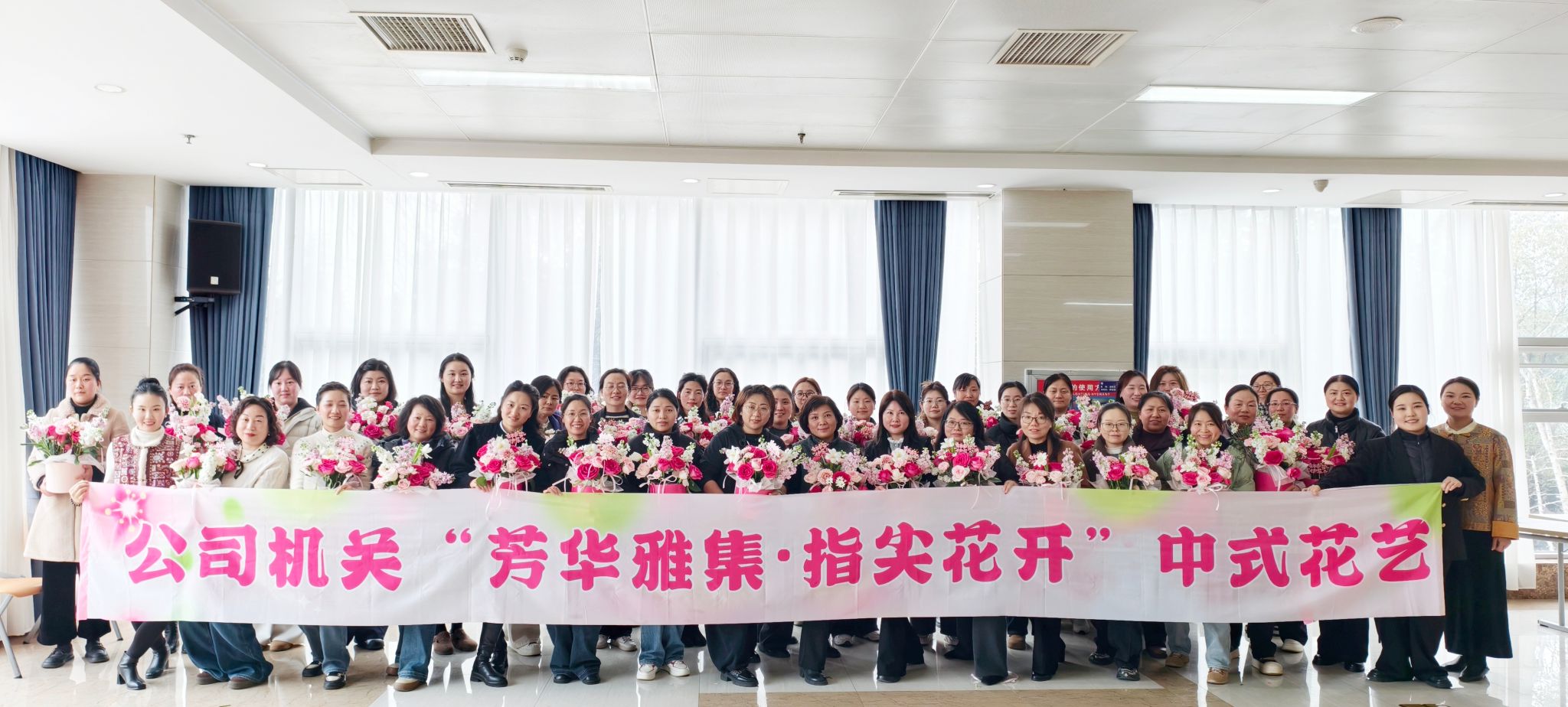 中式花艺手作:指尖花开,雅韵致美。“芳华雅集・指尖花开”中式花艺创意手作活动诗意满满。活动特邀专业花艺师现场授课,深入讲解中式花艺知识、美学理念及与传统文化的深度融合,带领大家感受东方花艺之雅致。在花艺师的悉心指导下,女职工们静心创作,修枝剪叶、搭配造型、精心布局,将一草一叶幻化为独具韵味的花艺作品。大家以花为媒、以手传情,在指尖创作中陶冶情操、涵养气质,用鲜花致敬自我、致敬每一位了不起的她。完成后的花艺作品集中展示、交流分享,花香与笑意相映,温情与美好相融。