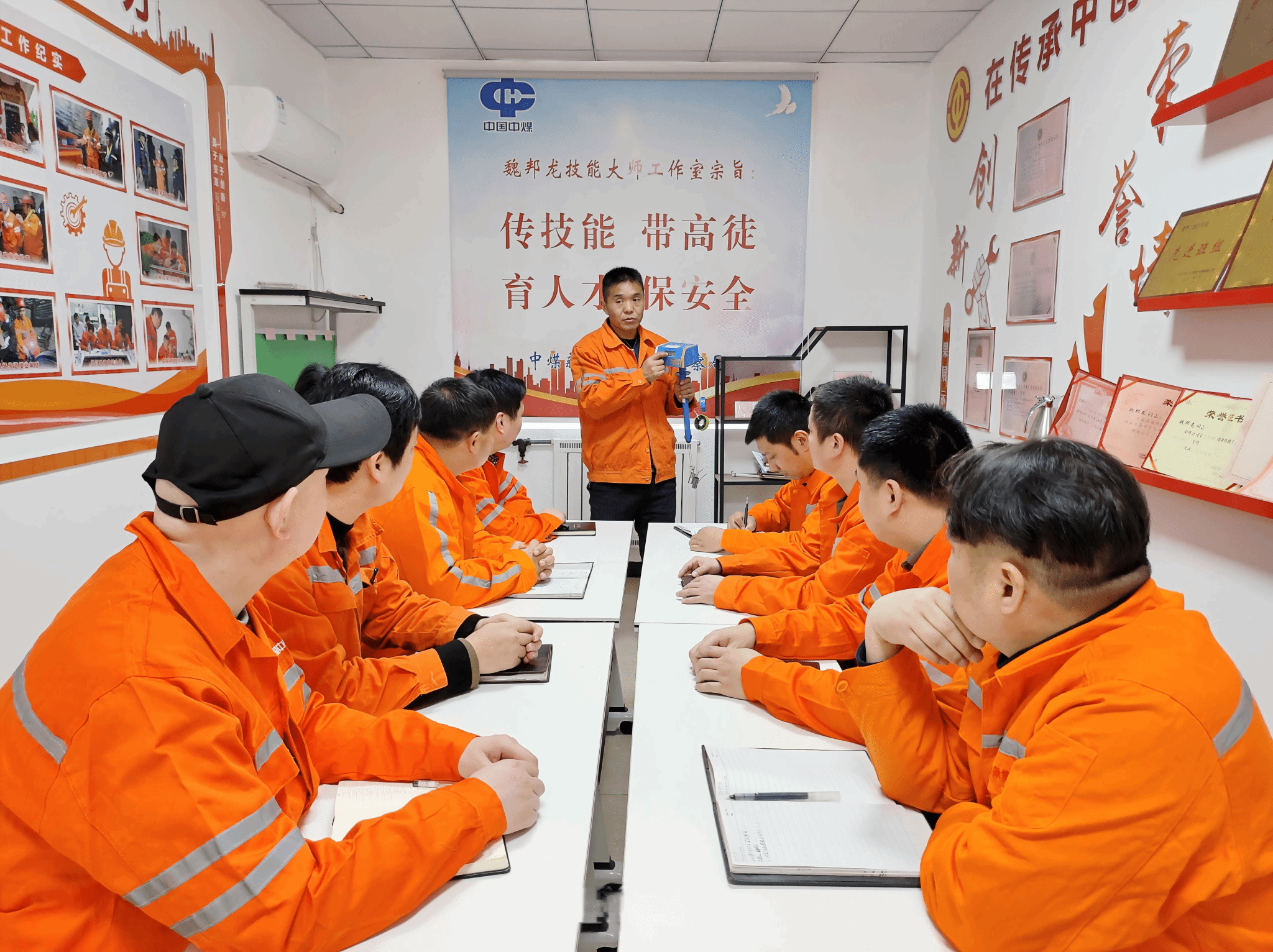 “一个人能守一片安全,一群人能护一方平安。”二十余年的一线深耕,让魏邦龙深知,产业的发展离不开人才的支撑,安监事业的薪火相传,更需要源源不断的新生力量。2021年,魏邦龙劳模工匠创新工作室正式成立,从此,他多了一个身份——青年职工的“引路人”。作为工作室带头人,他毫无保留地分享自己二十余年的实操经验和安监心得,把课堂搬到井下现场、开到设备旁,手把手教徒弟辨隐患、学技能、守规程。他带领工作室成员搞研发、解难题,把一个个创新思路转化为实际成果,让更多青年职工在实践中成长成才。在他的言传身教下,一批批年轻的安监人快速成长,成为守护矿井安全的新生力量,让安监人的奋斗精神在薪火相传中熠熠生辉。