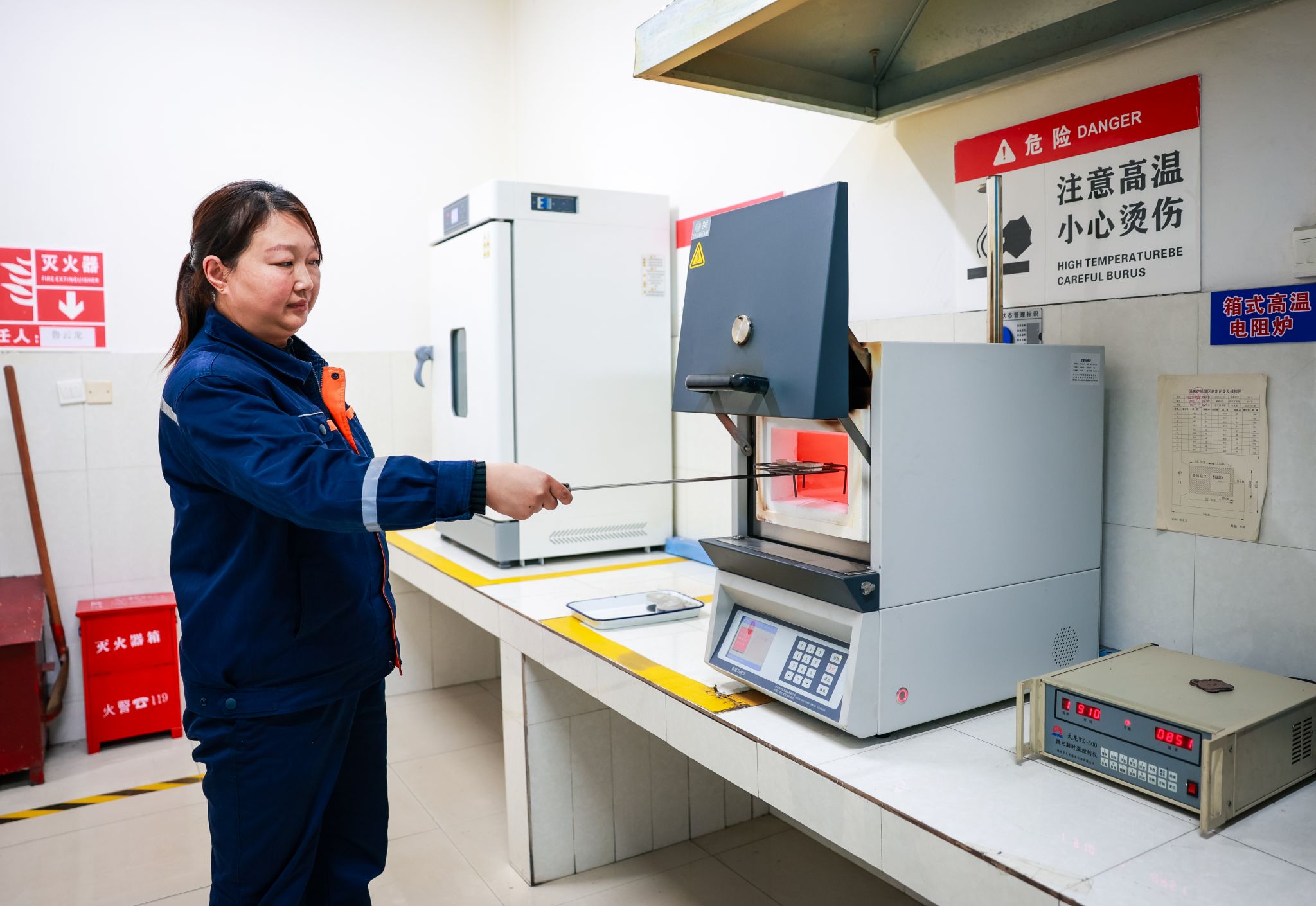 化验室里,陈稀罕正专注地操作着马弗炉。她用长柄坩埚钳将煤样缓缓送入炉膛,炉内通红的火焰映照着她专注的脸庞。“煤质检测是煤炭生产的‘眼睛’,每一个数据都直接影响着产品质量和企业信誉。”陈稀罕一边操作,一边向身边的年轻同事讲解着注意事项。