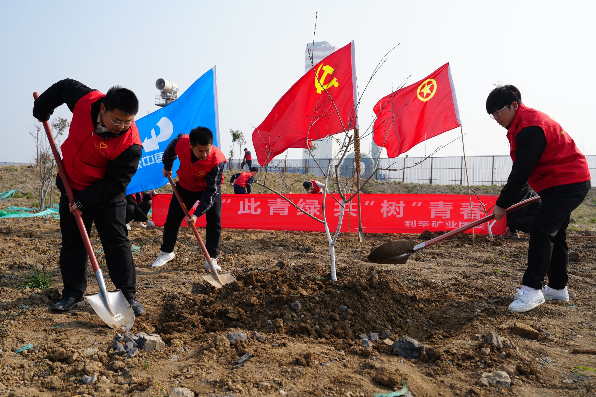 与此同时,自2020年起,利辛矿业举全矿之力推进临时周转场环境整治,彻底改变周转场昔日杂乱无章、粉尘飞扬的面貌。累计移栽冬青、紫薇、栾树等乔灌木近万棵,播撒草种覆盖面积超两万平方米,自主建设抑尘网围挡工程与智能喷淋系统,实现了扬尘污染全方位、常态化管控。如今的周转场,早已褪去昔日的“灰扑扑”,蜕变为一片绿意盎然的生态绿地,与矿区生态公园遥相呼应,成为矿区又一道靓丽的生态风景线。