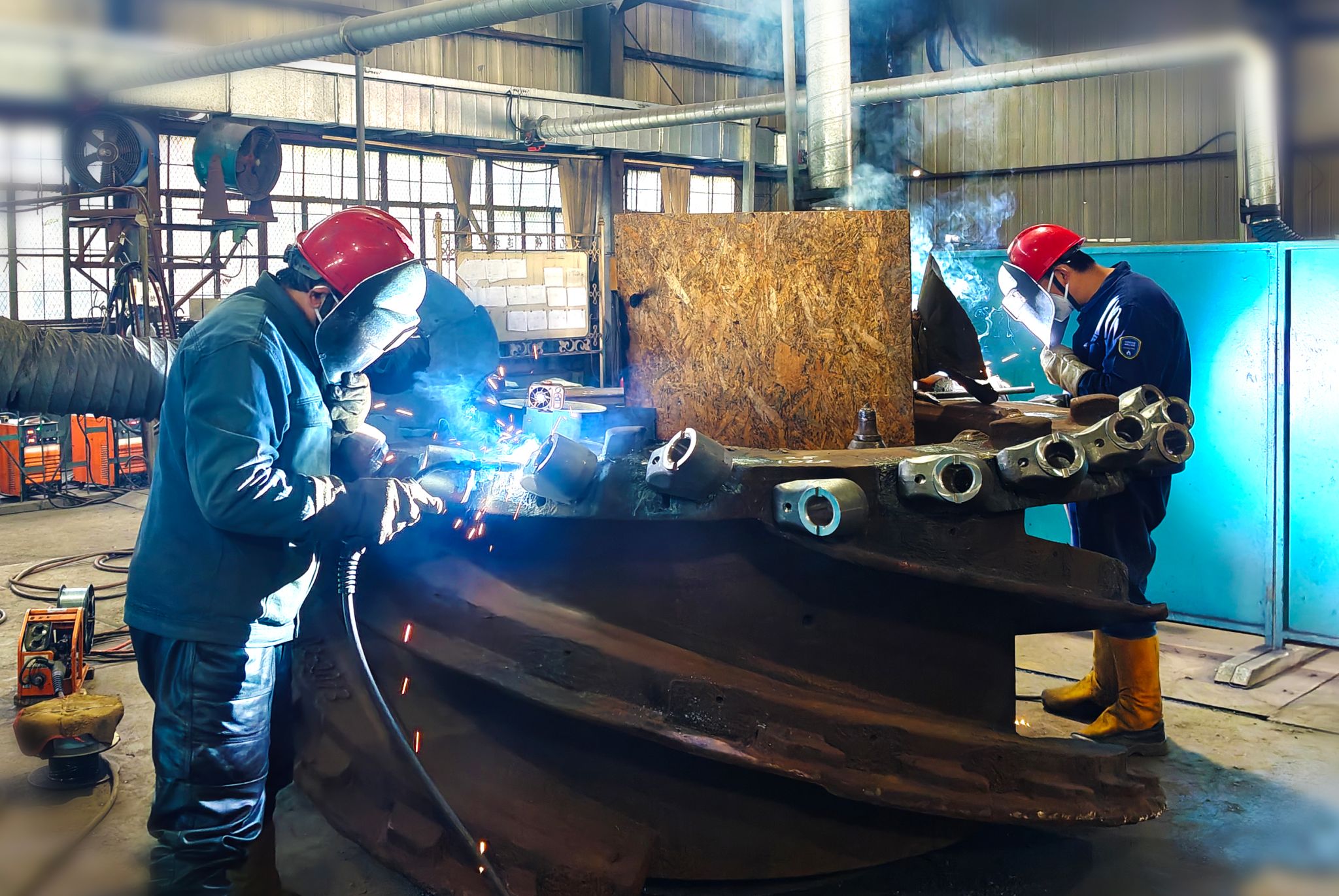 每年一进入夏季,铆焊厂房中就会热得像个大蒸笼。行车在作业职工的头顶“轰隆隆”地忙碌不停,地面上各个工位闪烁着焊接的弧光、飞溅着火焰切割的火花。焊接与切割作业产生的热量烘烤着作业职工和周围的物品,空气中弥漫着焊烟的味道。为紧急抢修一批又一批的支架结构件、三机槽体、采煤机滚筒,班组职工们穿着厚厚的工装和劳保用品与时间赛跑,和设备“角力”。