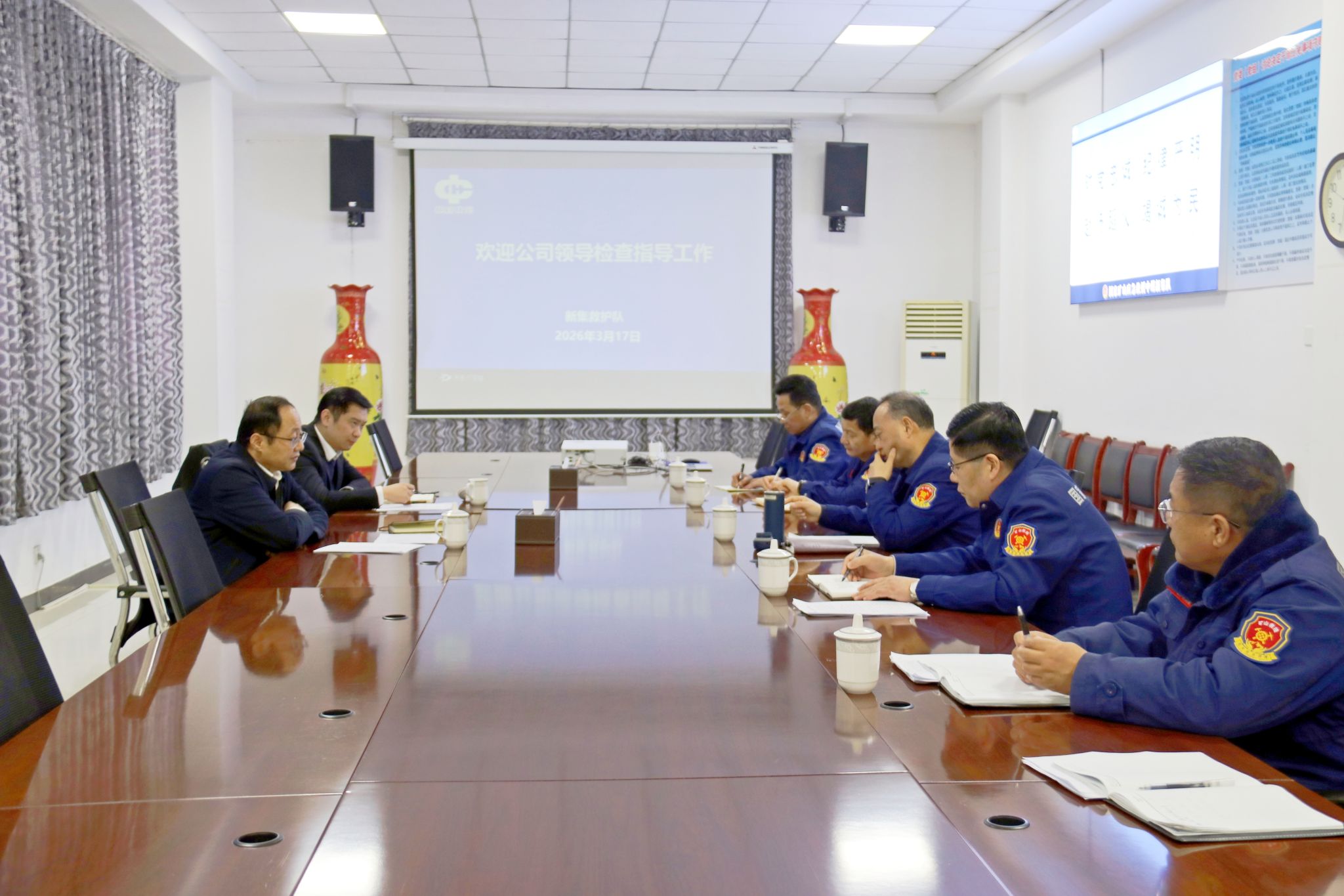 3月17日,公司党委委员、安监局局长渠慎杰到新集救护队检查指导工作,详细听取了新集救护队关于队伍建设、标准化验收整改、党建工作等方面的汇报,深入了解目前队伍人员结构、日常管理等情况。并就下一步工作提出明确要求,为新集救护队高质量发展指明方向、压实责任。