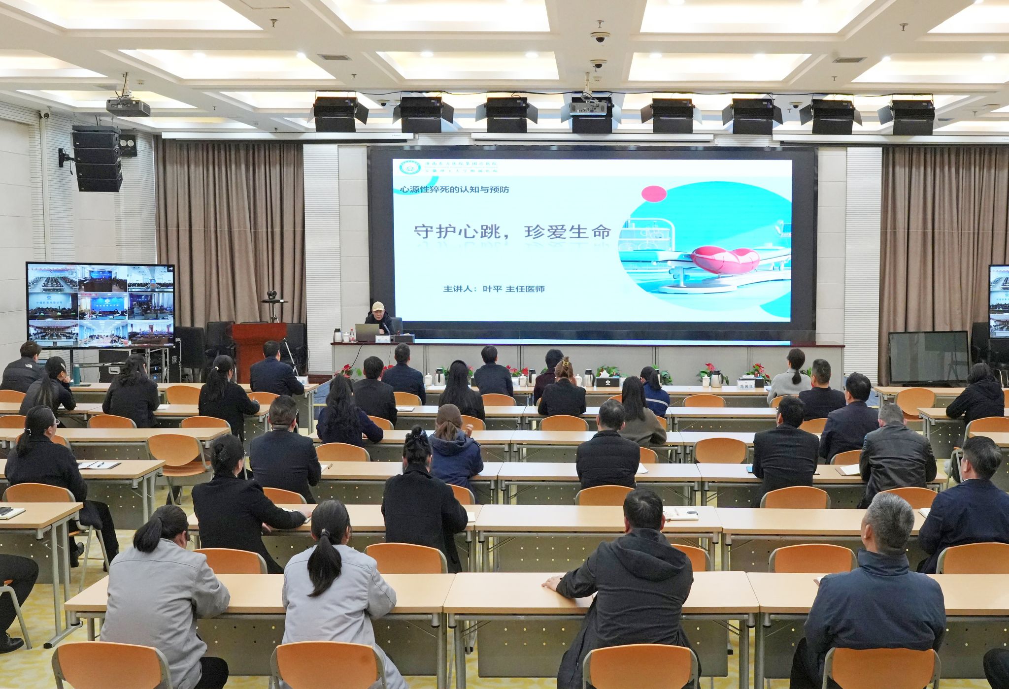 授课过程中,参会职工全程专注聆听、认真记录,严格遵守会场纪律,充分展现了公司职工严谨务实、积极向上的良好精神风貌。授课人员以生动鲜活的临床案例、通俗易懂的语言表达,将晦涩难懂的健康知识转化为易学易用的实操方法,现场解答职工在健康防护、疾病预防等方面的疑问,切实让职工在学习中收获知识、掌握技能,真正实现学有所获、学有所用、学有所行。