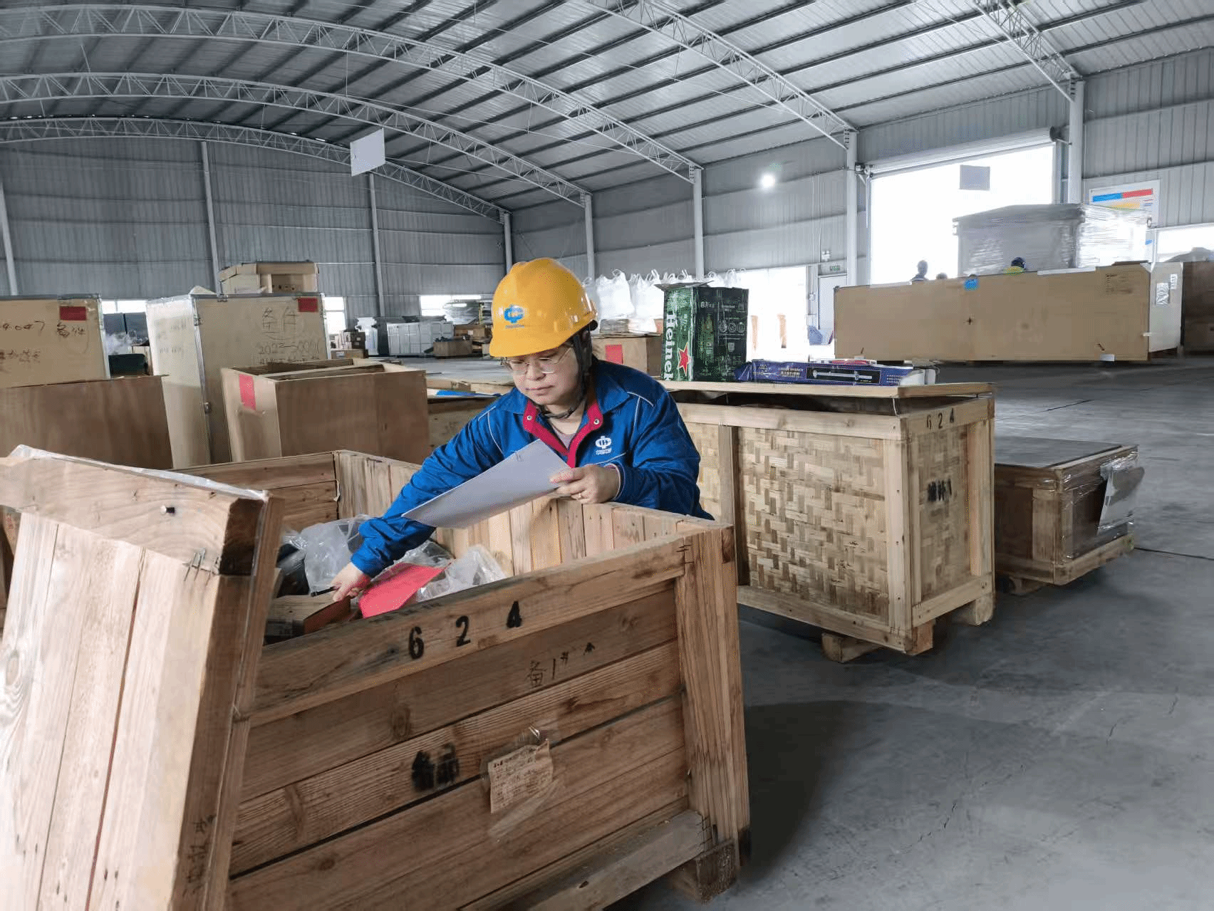 一到岗,她便开始一天的忙碌,她蹲在货架前,小心翼翼地核对入库配件。她的指尖灵活地翻动着物资单据,目光在单据与货架上的物品间来回穿梭,每一个数字、每一项规格都仔细核对,不放过丝毫偏差。“配件是生产一线重要保障,规格不能错,数量不能差,一丝马虎都可能影响后续生产进度。”她头也不抬地说道,声音温和却带着不容置疑的严谨。“库房管理看似简单,实则是个细活、杂活,既要管得好,还要调得快,更要算得准。”她站起身,拍了拍工装裤上的灰尘,领着我们穿梭在各条通道。她的脚步轻快而稳健,对每一种物资的位置都了如指掌,仿佛库房里的每一件物品都刻在她的心里。正在库房的通道上走着,突然收到有工作人员前来领用物资的通知,她立即放下手中的台账,熟练地查询领用清单,快速定位物资位置,转身取下物资,仔细核对规格、数量,确认无误后,在领用单上签字确认,整个流程行云流水,不超过五分钟。“颜姐做事特别细心,我们来领用物资,从来没有出现过错发、漏发的情况。有她在,我们特别放心。”前来领用物资的工作人员表示赞赏。“我们多细心一点,一线工作人员就能少跑一趟,多节省一点时间投入生产。”她说道,脸上带着朴实的笑容。面对领取人员的询问,她总是耐心解答,详细说明物资的使用注意事项,用专业与热情做好服务保障。
