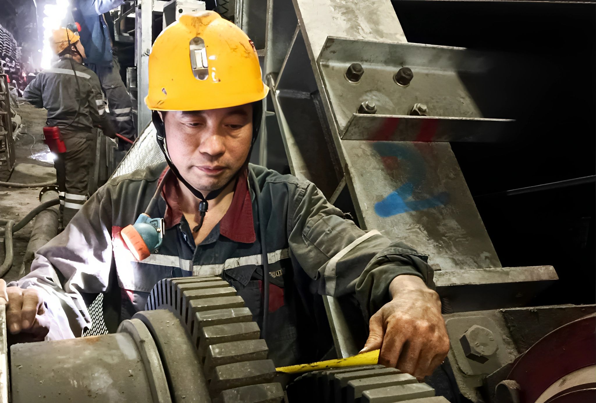 每项安装工程,李伟都是队里最操心、最忙碌的人。特别是水平找正、间隙调校等关键技术环节,稍有偏差就可能造成不可逆的影响。作为跟班队长和技术骨干,每个施工环节他不仅亲手操作,还严格把关工友作业质量,就连一颗螺丝都要亲自拧紧才安心。因此,他常常是全队最晚升井的人。每班结束后,他还要梳理施工进度、规划下一环节物料准备,晚升井一两个小时是常事。偶尔有人调侃,他总是憨笑回应:“这活干不好,别人一讲是李伟干的,我丢不起这个人。”