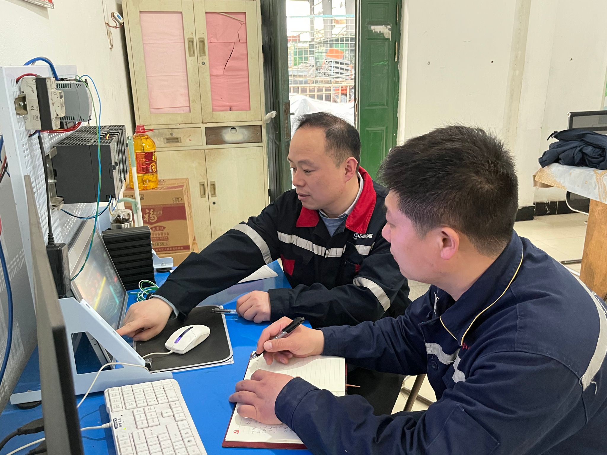 “老徐,你看这个接线端子有点氧化,是不是问题出在这?”徒弟胡建蕾指着一个细节问道。徐敬文点点头,一边用砂纸仔细打磨端子,一边讲解:“井下潮湿,端子氧化很容易接触不良,排查故障就得抠这些细节,不能放过任何一个小问题。”打磨、重新接线、合闸测试,一系列动作熟练利落,电压很快恢复稳定,而旁边的徒弟早已把操作要点和故障原因记满了半页纸。
