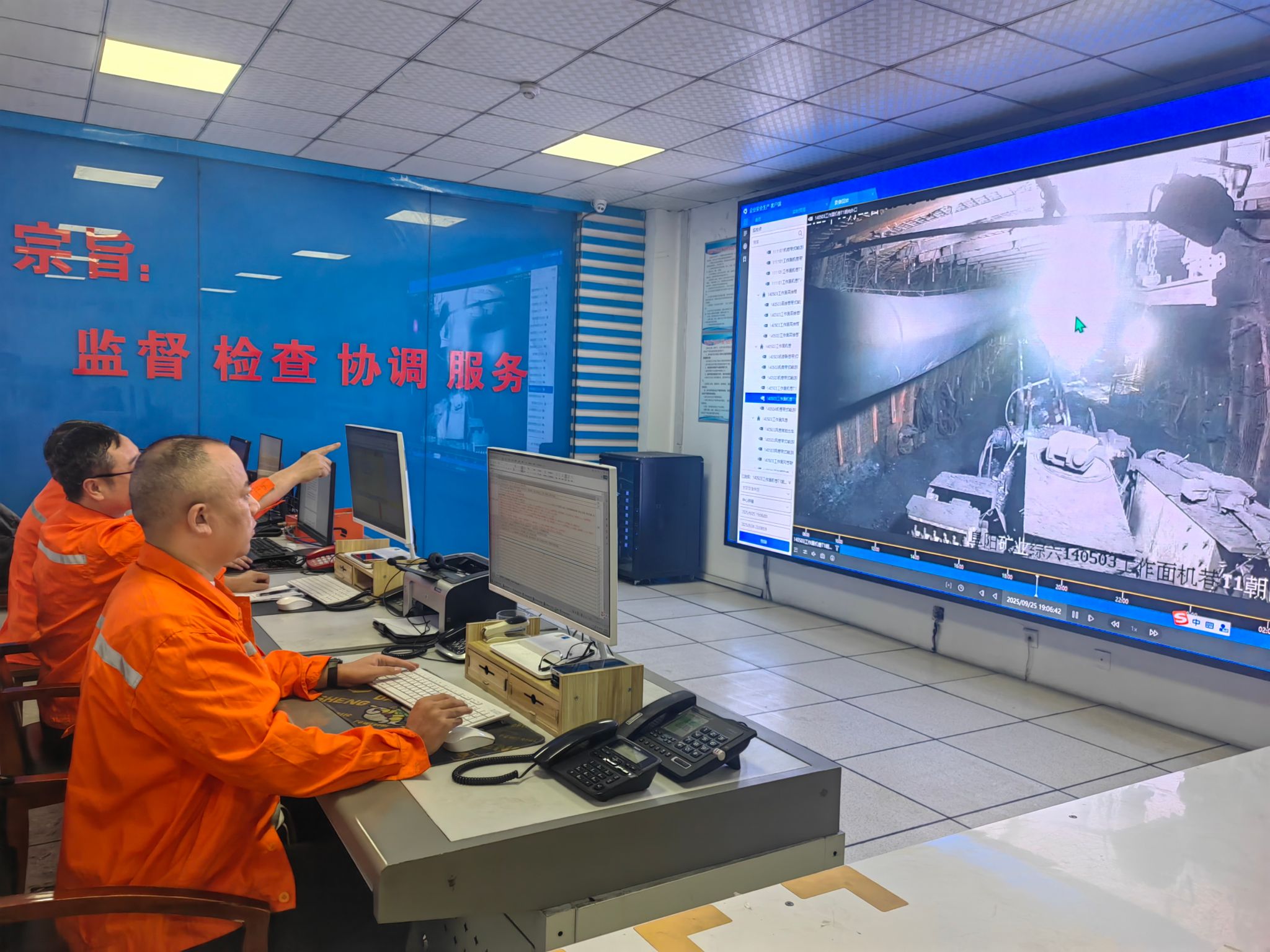 监控员通过屏幕发现职工未佩戴防尘口罩、操作不规范、临时支护不到位等问题,立即广播提醒、通知现场安监核实、后续专项教育,已成为工作常态。许多职工由最初的不适应到后来的自觉遵守,纷纷感慨:“以前靠人盯,现在有了‘电子眼’,连‘小动作’都藏不住,反而更安心了。”