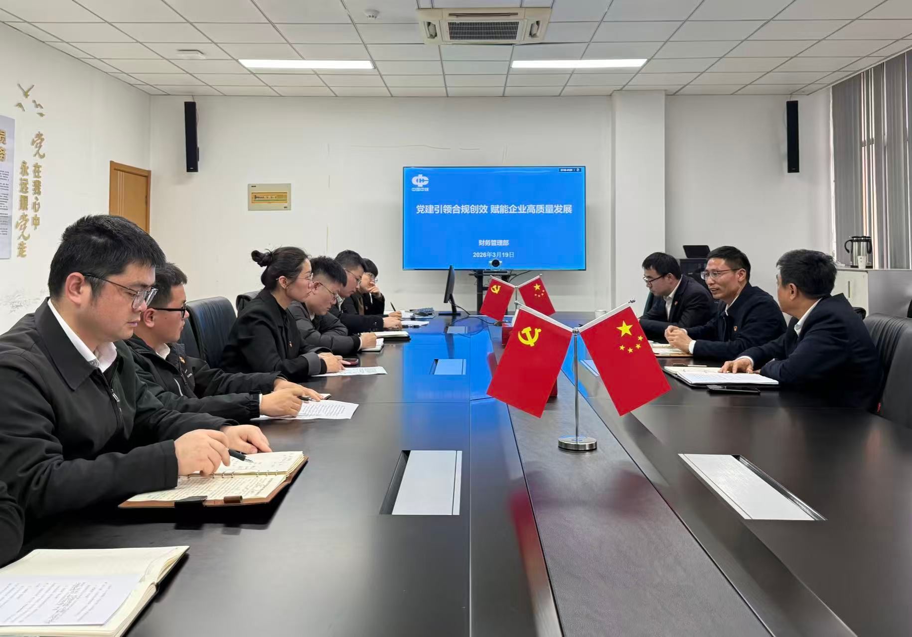 为深入学习贯彻党的二十届四中全会精神,推动党建工作与财务管理深度融合,助力公司 “12457” 发展战略落地见效,3 月 19 日上午,财务管理部召开 “党建引领合规创效 赋能企业高质量发展” 专题学习研讨会。财务管理部党支部全体党员参加会议,公司基本培训工作指导小组王伟到会列席并指导。
