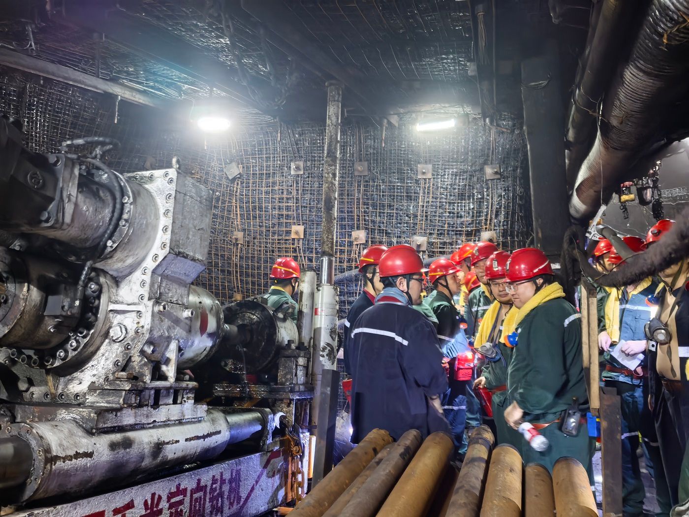 参会人员深入刘庄煤矿120102轨道顺槽定向钻场,观摩学习了井下长距离定向探放水钻孔施工流程,听取了刘庄煤矿关于长距离定向钻孔的设计、准备及施工情况和取得经验。座谈交流中,各矿对照自查、举一反三,总结亮点经验、学习推广好的做法。新集一矿、刘庄煤矿分别阐述了地测防治水现场标准化管理“两会商”和跟踪督办机制,实现了“管理流程化、责任唯一化、整改闭环化”;口孜东矿通过“三级”督查制度,构建了全层级管控体系,有效夯实了标准化基础。刘庄煤矿更是依托机制优势,在长距离定向钻探技术上取得突破,创新了公司大俯角定向钻成孔深度纪录。