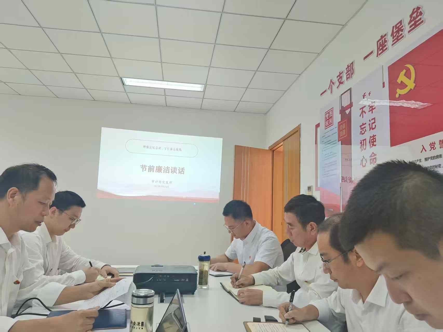 国庆、中秋佳节将至,为深入贯彻落实中央八项规定精神及其实施细则,巩固拓展作风建设成果,进一步增强审计人员的廉洁自律意识,筑牢拒腐防变的思想防线,营造风清气正的节日氛围,9月25日上午,审计部党支部组织全体干部职工召开了节前廉洁集体谈话会。