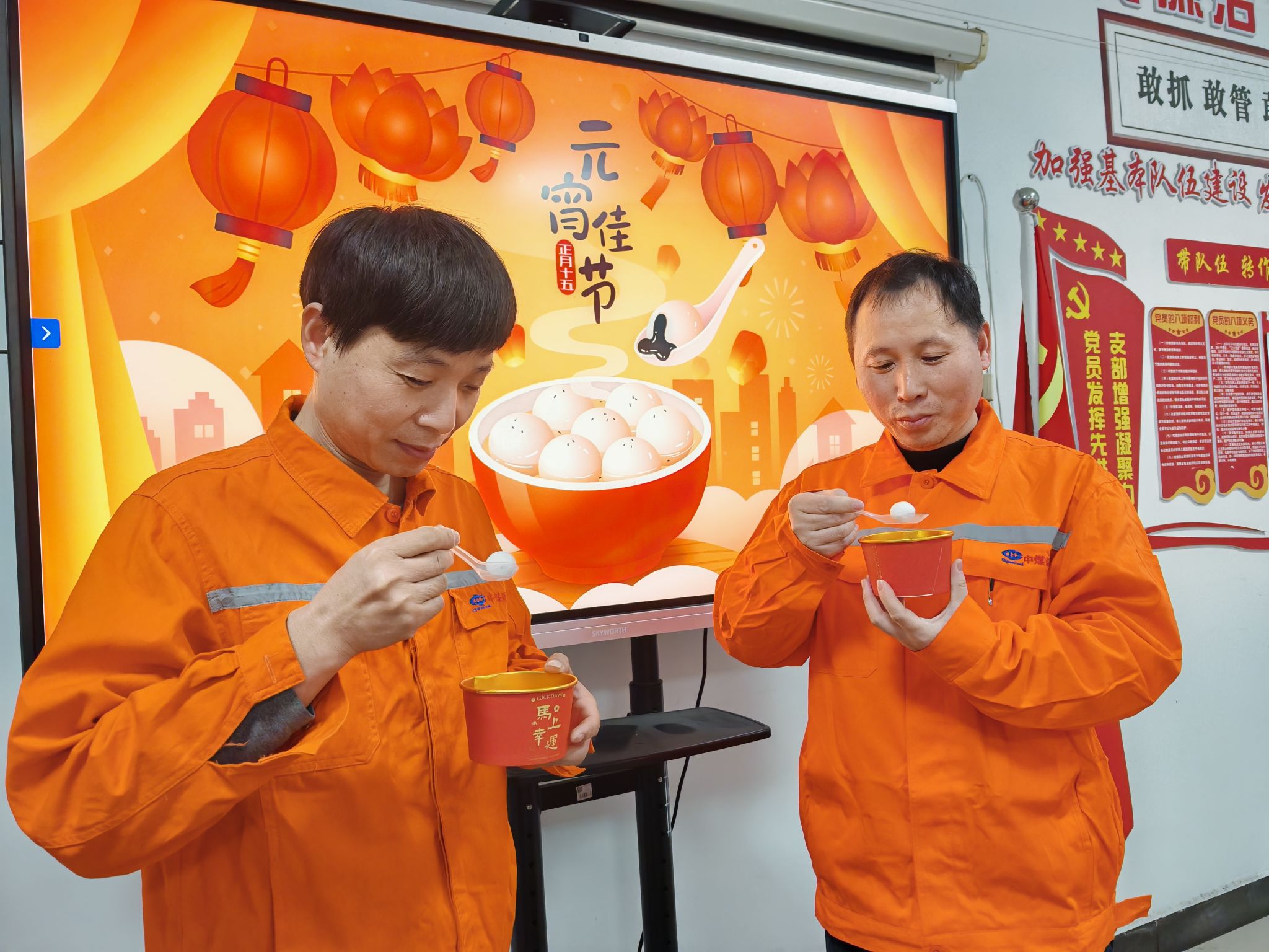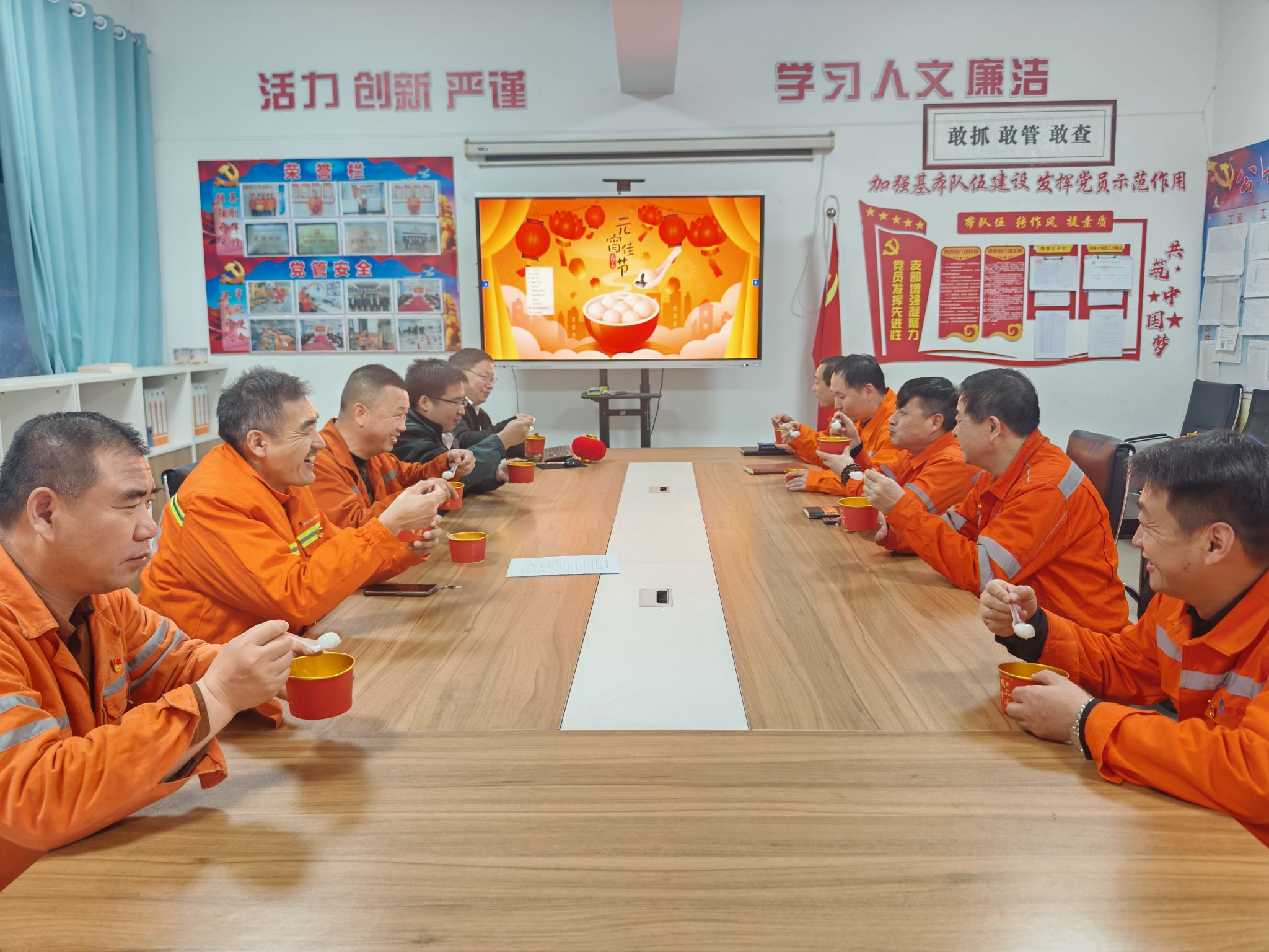 “正月十五吃元宵,是在中国由来已久的习俗。宋代,民间即流行一种元宵节吃的新奇食品,最早叫‘浮元子’,后称‘元宵’……”宣讲者通过介绍元宵节的起源、习俗、以及相关的诗词,让大家了解其所蕴含的“团圆、和谐、平平安安”的意义,使大家懂得了元宵节传承的不仅仅是中华民族的传统节⽇,更是中华民族的⾮物质⽂化精神的道理,希望大家要把它珍惜好、传承好。本次活动有猜灯谜、送汤圆、讲解元宵节的由来三项内容。猜灯谜的游戏充分发挥出了自己的聪明才智。最后,支部党员将一碗碗带有祝福和关爱的汤圆送到职工手中。大家围在一起,品尝着软软糯糯的汤圆,脸上洋溢着幸福的笑容。小小的汤圆温暖了职工的胃,也拉近了党支部和职工之间的距离,让大家感受到了家的温暖。