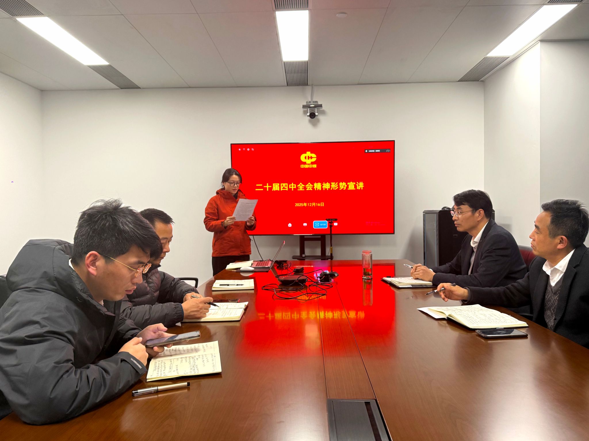 为深入学习宣传贯彻党的二十届四中全会精神,12月16日,新能源公司采用“线上+线下”联动模式,组织开展党的二十届四中全会精神专题宣讲,公司全体人员参加。