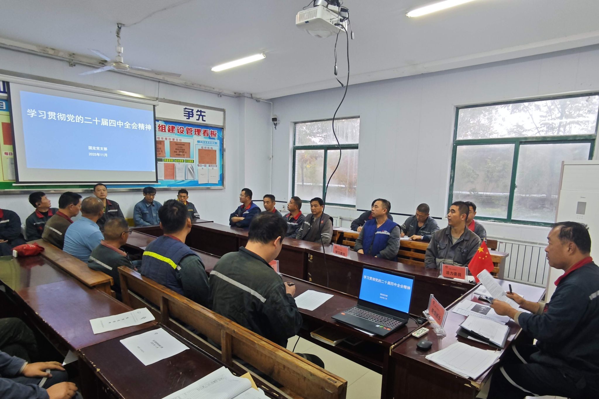 11月7日,固定党支部利用所辖单位班前会时间,组织全体职工开展党的二十届四中全会精神专题学习活动。活动中,党支部书记带领大家逐字逐句研读《中国共产党第二十届中央委员会第四次全体会议公报》核心章节,针对全会关于国有企业高质量发展、安全生产等重点部署,结合矿井生产运营实际拆解解读,让参会人员清晰把握精神实质与实践方向。活动要求大家,在今后的工作中持续加强学习,推动全会精神入脑入心。坚持学用结合,切实将学习成果转化为提升工作效率、破解实际难题的具体行动,助力矿井高质量发展。