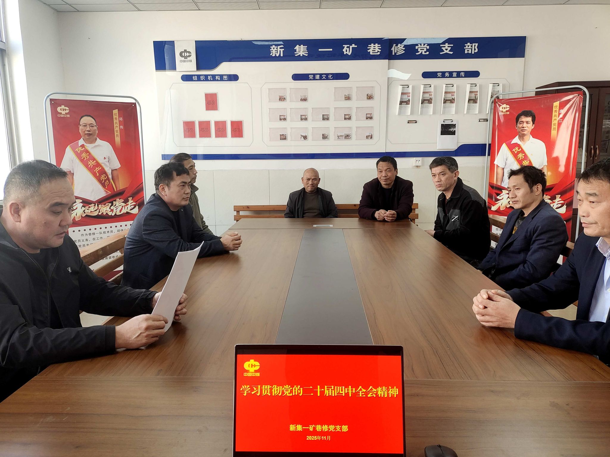 11月2日,巷修党支部组织党员干部职工认真学习党的二十届四中全会公报,深入了解“十五五”时期经济社会发展必须遵循的原则、主要目标和要求,努力将学习成果转化为日常工作的动力。大家纷纷表示,要将学习贯彻党的二十届四中全会精神作为当前和今后的一项重大政治任务,进一步学深悟透新思想、新论断、新要求,立足岗位、真抓实干,以实际行动为矿井高质量发展贡献更大力量。