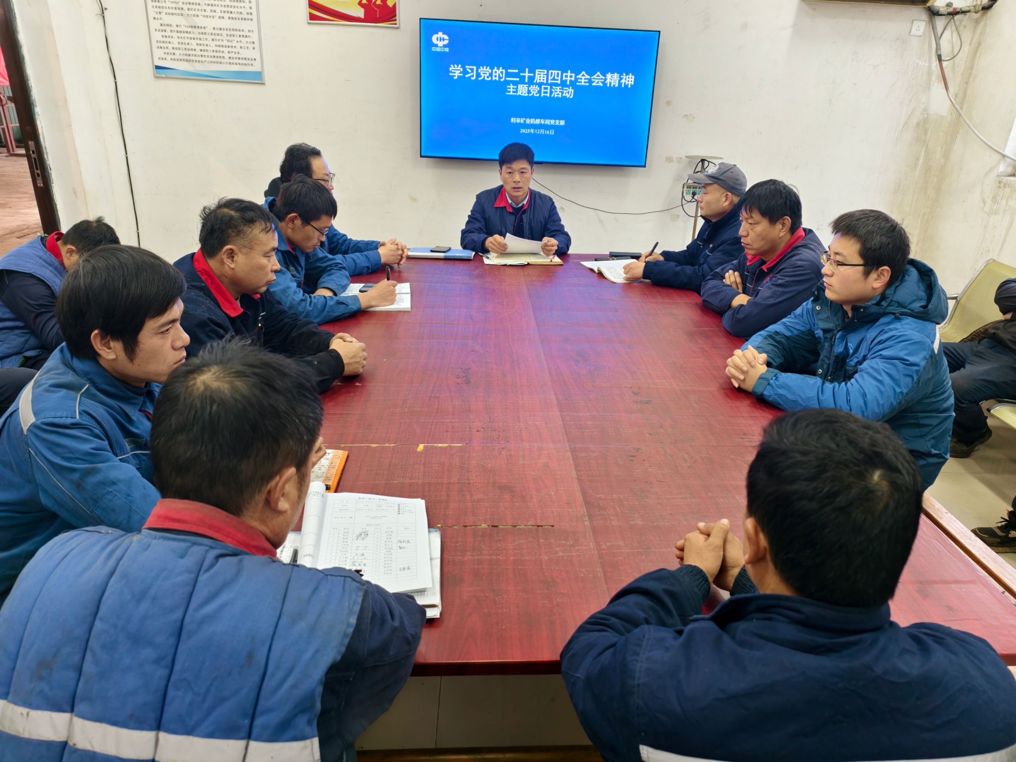 为深入学习贯彻党的二十届四中全会精神,切实把思想和行动统一到全会决策部署上来,12月16日,设备维修公司利辛矿业机修车间党支部开展以“学精神、强本领、促实干”为主题的主题党日活动,支部全体党员和职工代表参加。