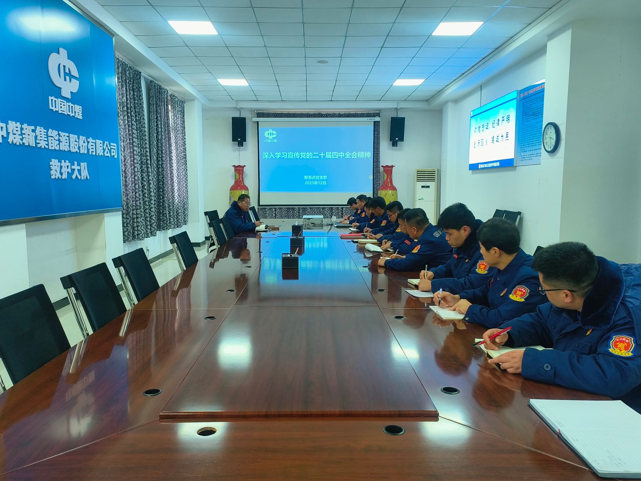 为推动党的二十届四中全会精神在基层一线落地生根、见行见效,12月24日,新集救护队党委书记刘德玺以“学思践悟全会精神 筑牢应急救援防线”为主题,为所联系点党支部开展专题宣讲。支部全体党员、骨干队员参加学习,凝聚起以高质量党建引领应急救援事业高质量发展的强大合力。