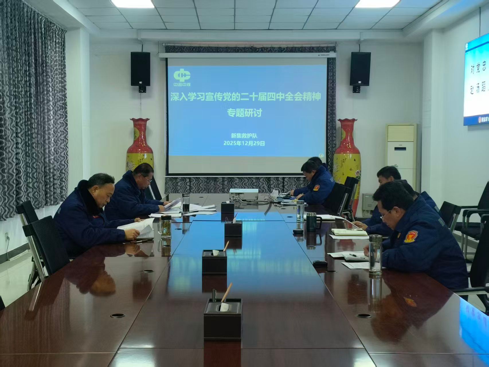12月29日,新集救护队党委理论学习中心组召开学习贯彻党的二十届四中全会精神专题研讨会。会议由党委书记刘德玺主持,新集救护队领导班子成员参加并作交流发言。