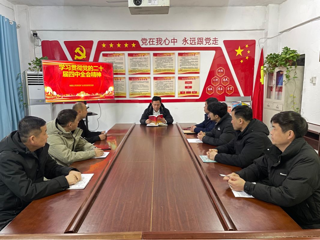 1月11日,地勘公司阜阳矿业项目部党支部组织开展党的二十届四中全会精神专题宣讲活动,进一步推动全会精神落地生根,凝聚高质量发展合力。党支部书记主持,支部全体党员参加。