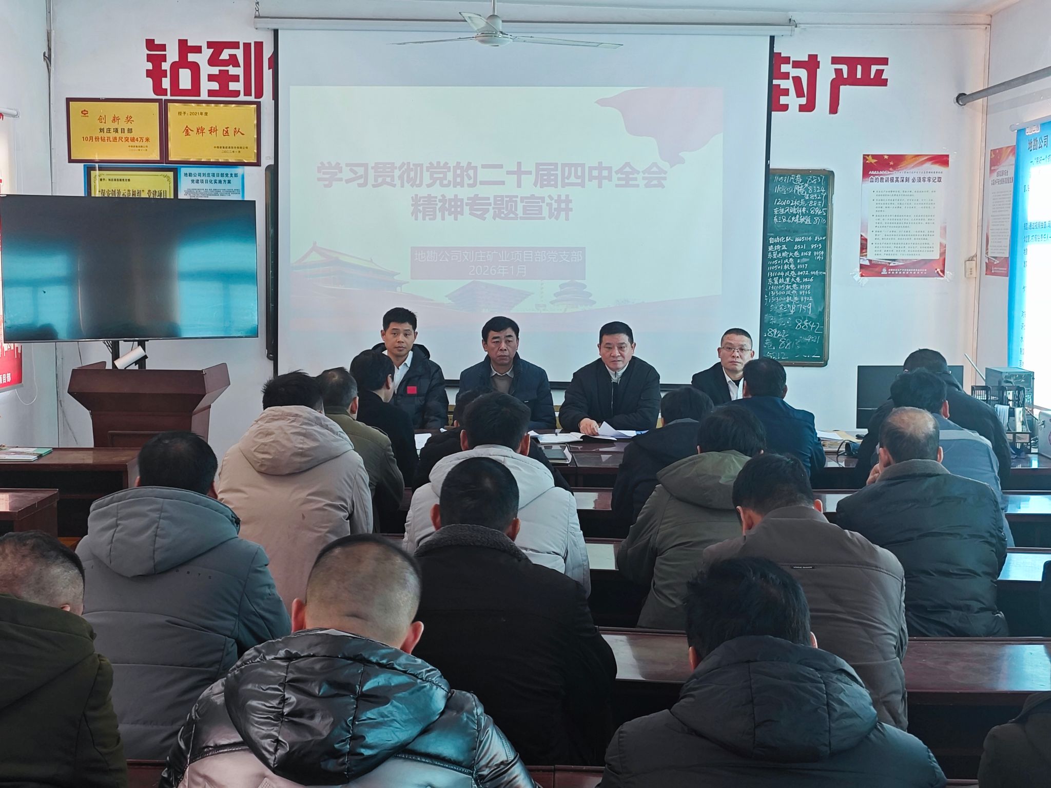1月15日,地勘公司党委副书记、经理洪训胜到联系点党支部向一线职工宣讲党的二十届四中全会精神。要求基层干部职工,学深悟透全会精神,切实将学习效果转化为矿井灾害治理的具体行动。党支部管技人员及中夜班职工参加。