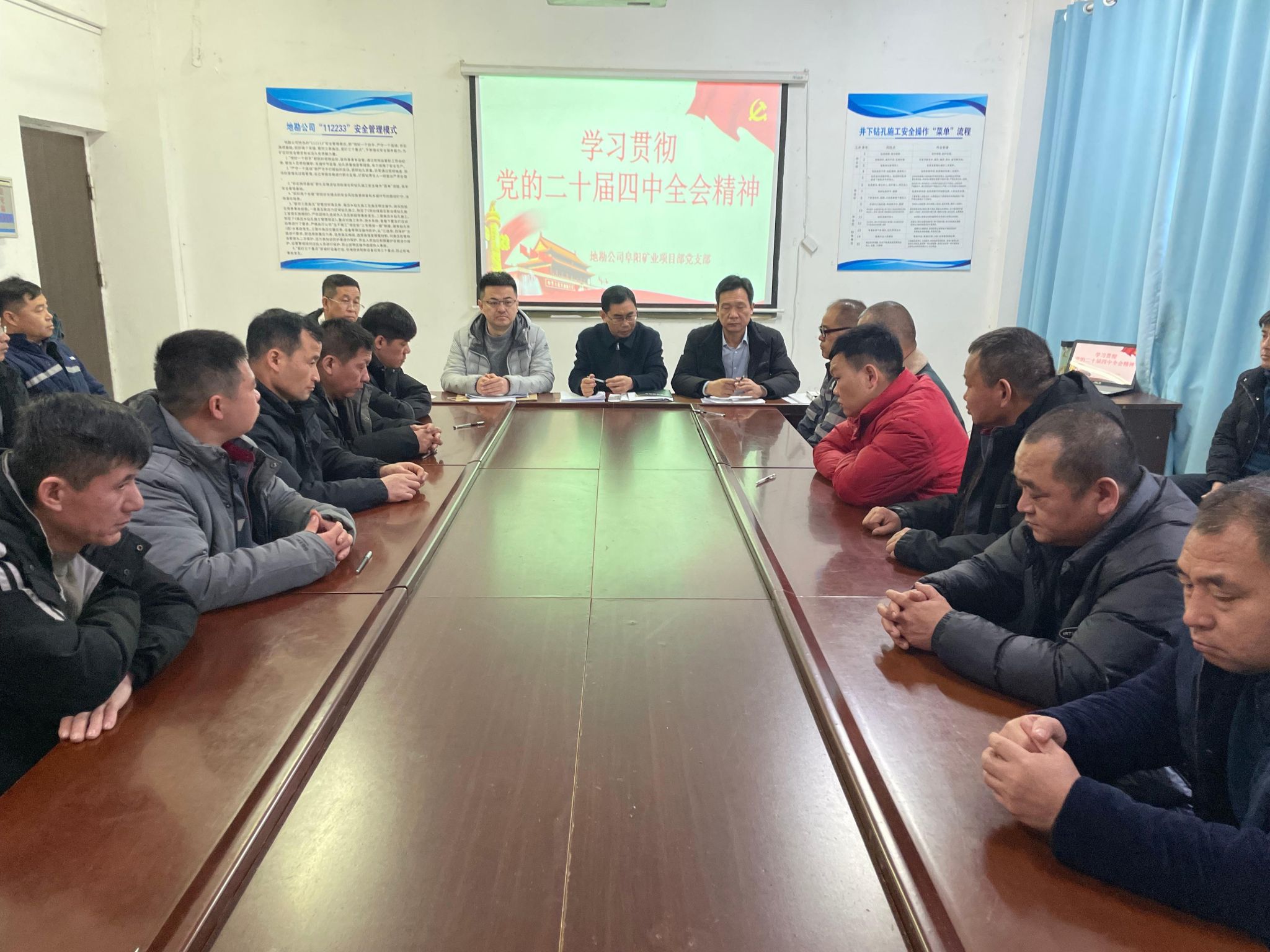 为持续推动党的二十届四中全会精神走深走实,1月19日,地勘公司党建联系点领导到阜阳矿业项目部党支部组织全体党员开展党的二十届四中全会精神宣讲活动。支部党员干部职工参加。