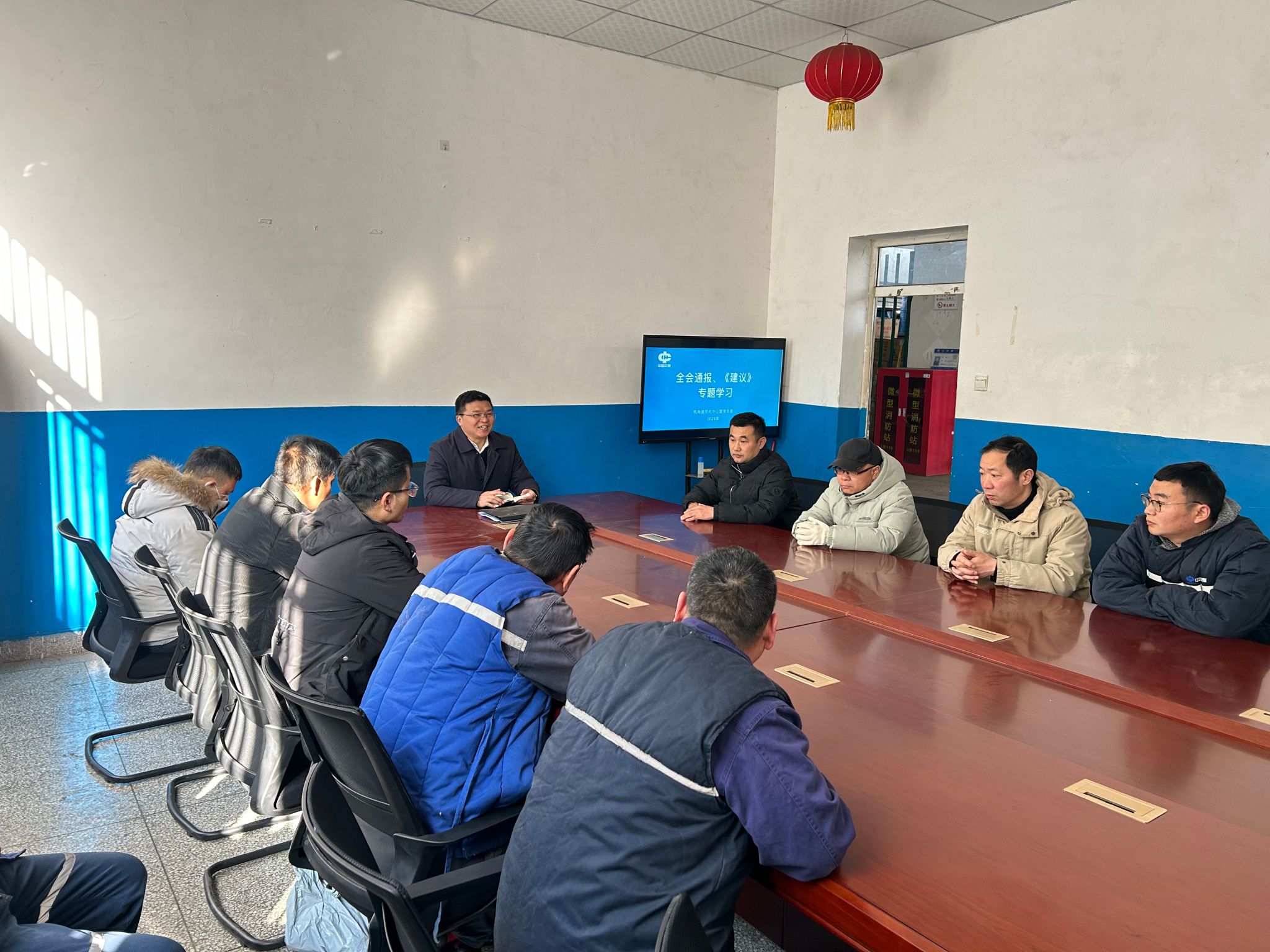 党的二十届四中全会为新时代产业升级与高质量发展绘就宏伟蓝图,1月22日,利辛矿业机电信息化办公室党支部迅速行动,将学习贯彻全会公报、《建议》及说明作为重大政治任务,以学铸魂、以学促干,在支部掀起全员学习热潮。