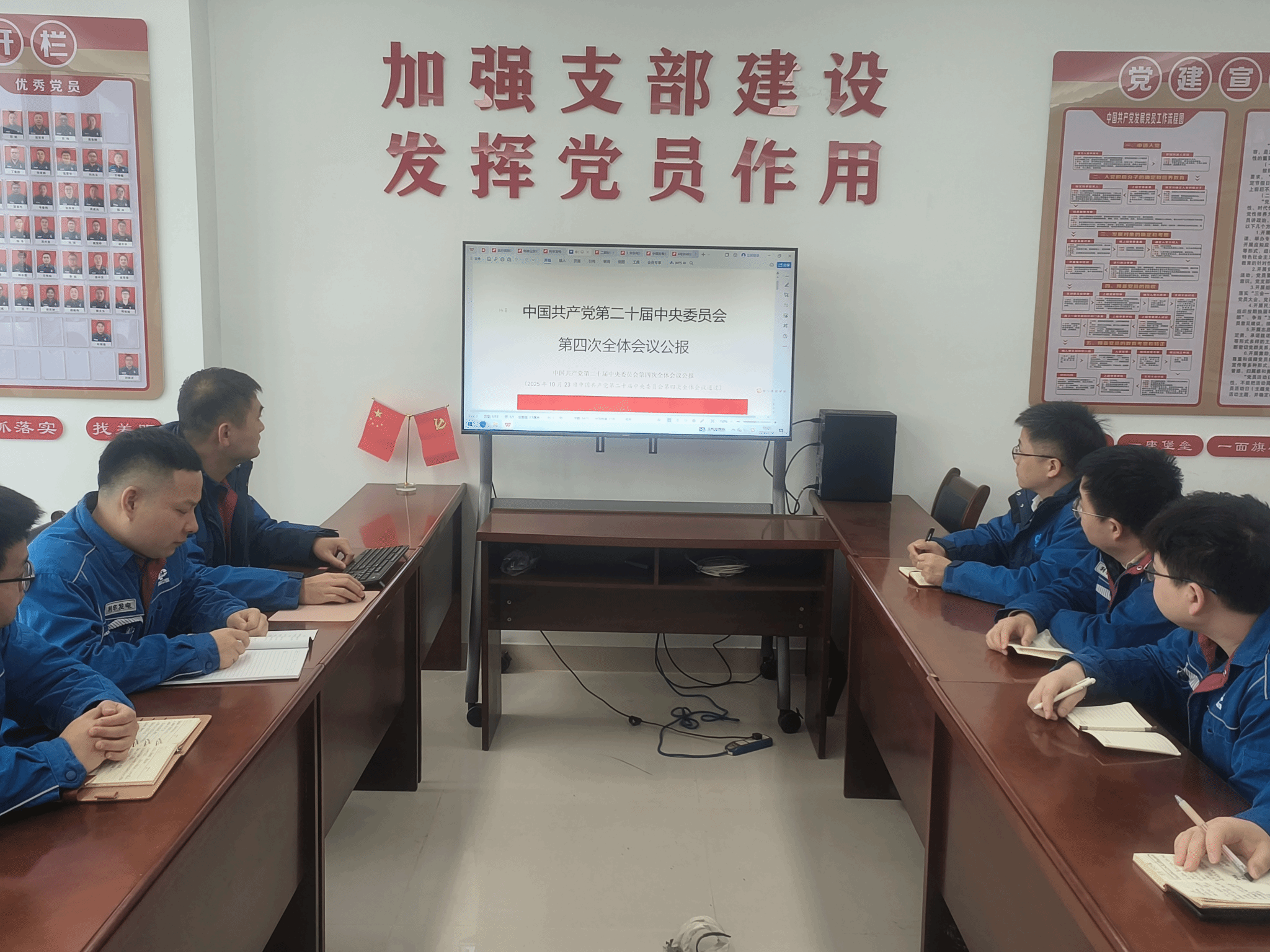 为深入学习贯彻党的二十届四中全会精神,切实把思想和行动统一到党中央决策部署上来,利辛发电运行二值利用学习班时间,在党员活动室开展党的二十届四中全会精神专题学习。全体人员集中学习领会全会精神实质、核心要义和实践要求,推动全会精神入脑入心、落地见效。