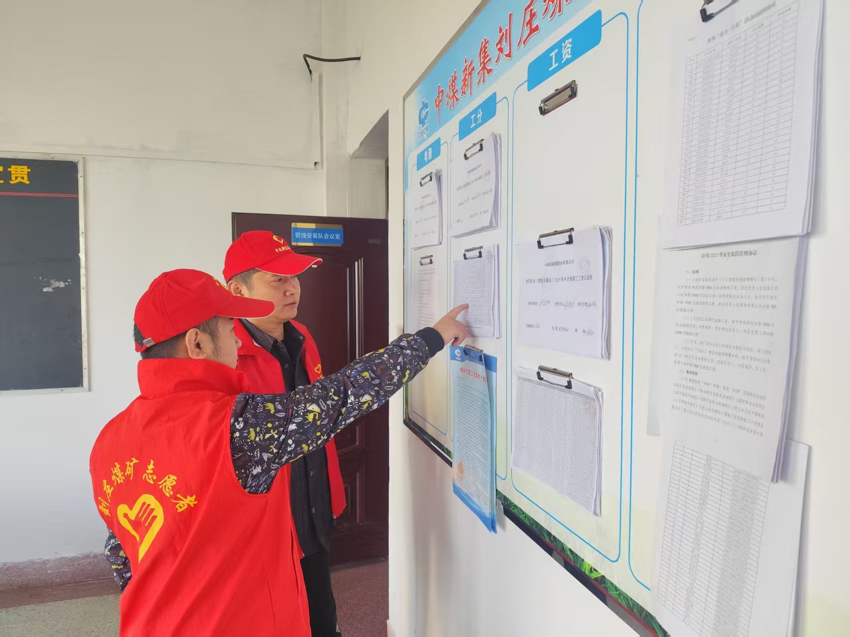此次督查中,青安岗员们紧扣职工关心的核心问题,将区队工资核算明细、工分统计台账、考勤记录的公开公示情况作为首要检查内容。岗员们逐页核对公示材料,重点核查公开的及时性——是否在规定时间内完成公示;规范性——数据填写是否完整、签字确认是否齐全;透明性——是否清晰呈现核算依据与扣除明细,确保每一项数据都经得起职工检验。