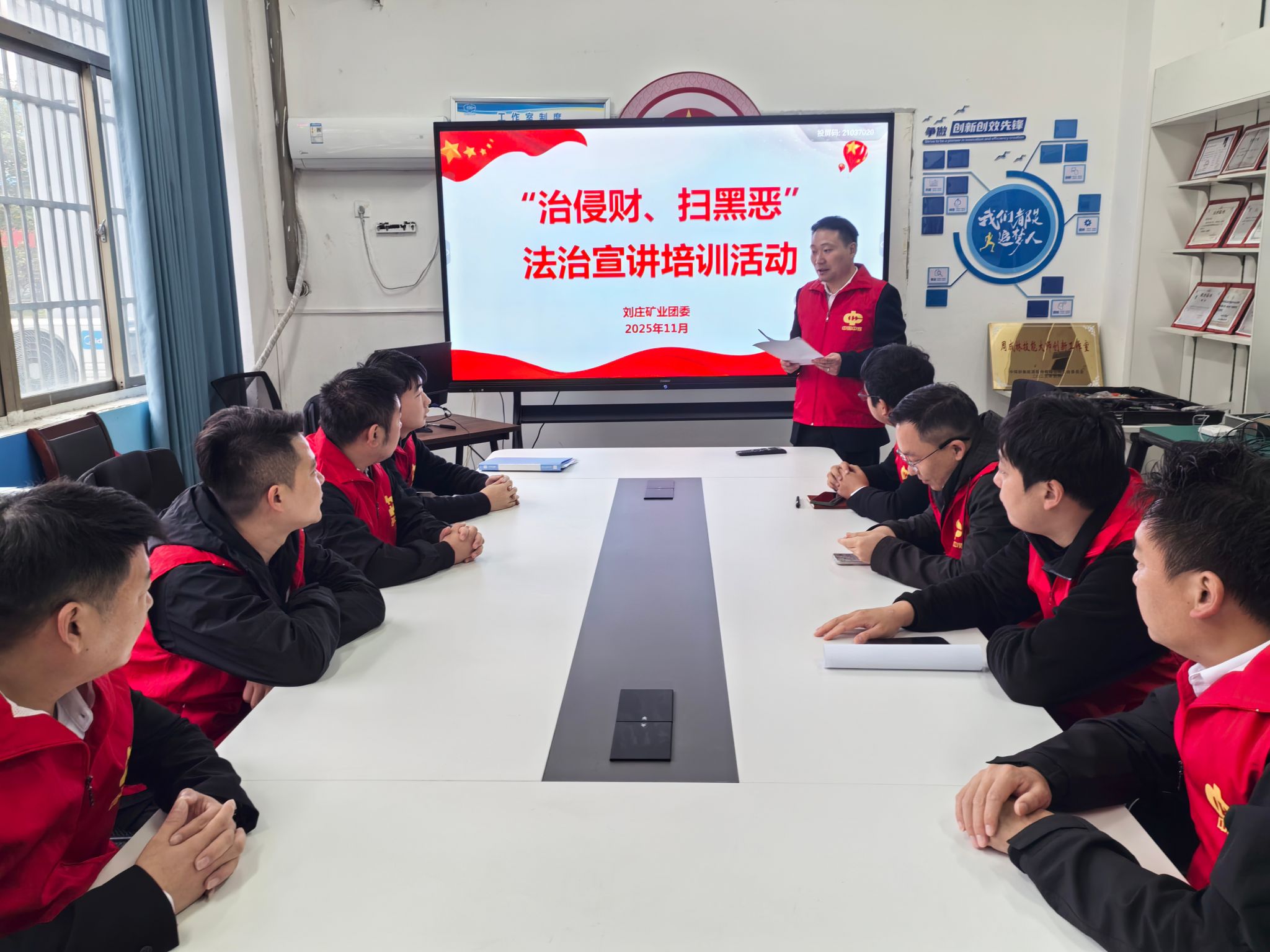 为深入贯彻落实《关于开展普法宣传教育活动的通知》精神,推动四季度“治侵财、扫黑恶”普法主题走深走实,11月8日,刘庄矿业团委组织基层团干部及青年志愿者开展专题普法宣讲培训,着力打造一支“懂政策、善宣讲、接地气”的青年普法队伍,为法治矿区建设注入青春动能。