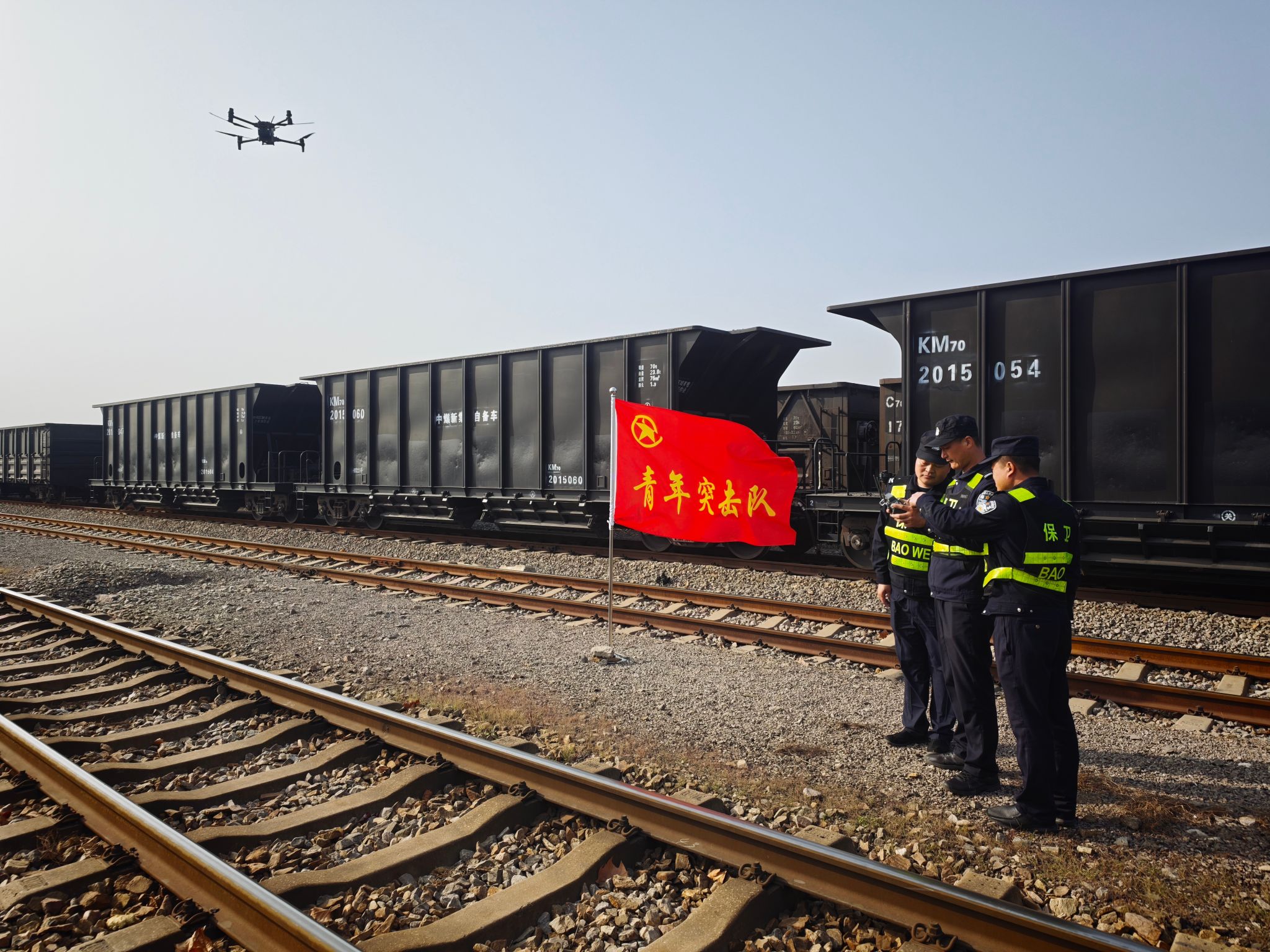 青春担当,勇挑应急重担。除日常安防巡查外,无人机青年突击队还主动承担起应急处置、重大活动安保等急难险重任务,成为公司安全保卫工作的“尖刀力量”。在公司新区铁运线上,无人机发挥了重大的作用。无人机运用其机动灵活的优势,对铁运线上的运煤重车进行跟踪巡查,确保运煤重车平安到达站点。在集团公司领导视察、公司重大安保等重要活动中,突击队运用无人机进行空中警戒、人流监控,与地面安保力量形成立体防控网络,确保了各项活动的安全有序开展。队员们放弃休息时间,加班加点完成任务,用实际行动诠释了青年一代的责任与担当。
