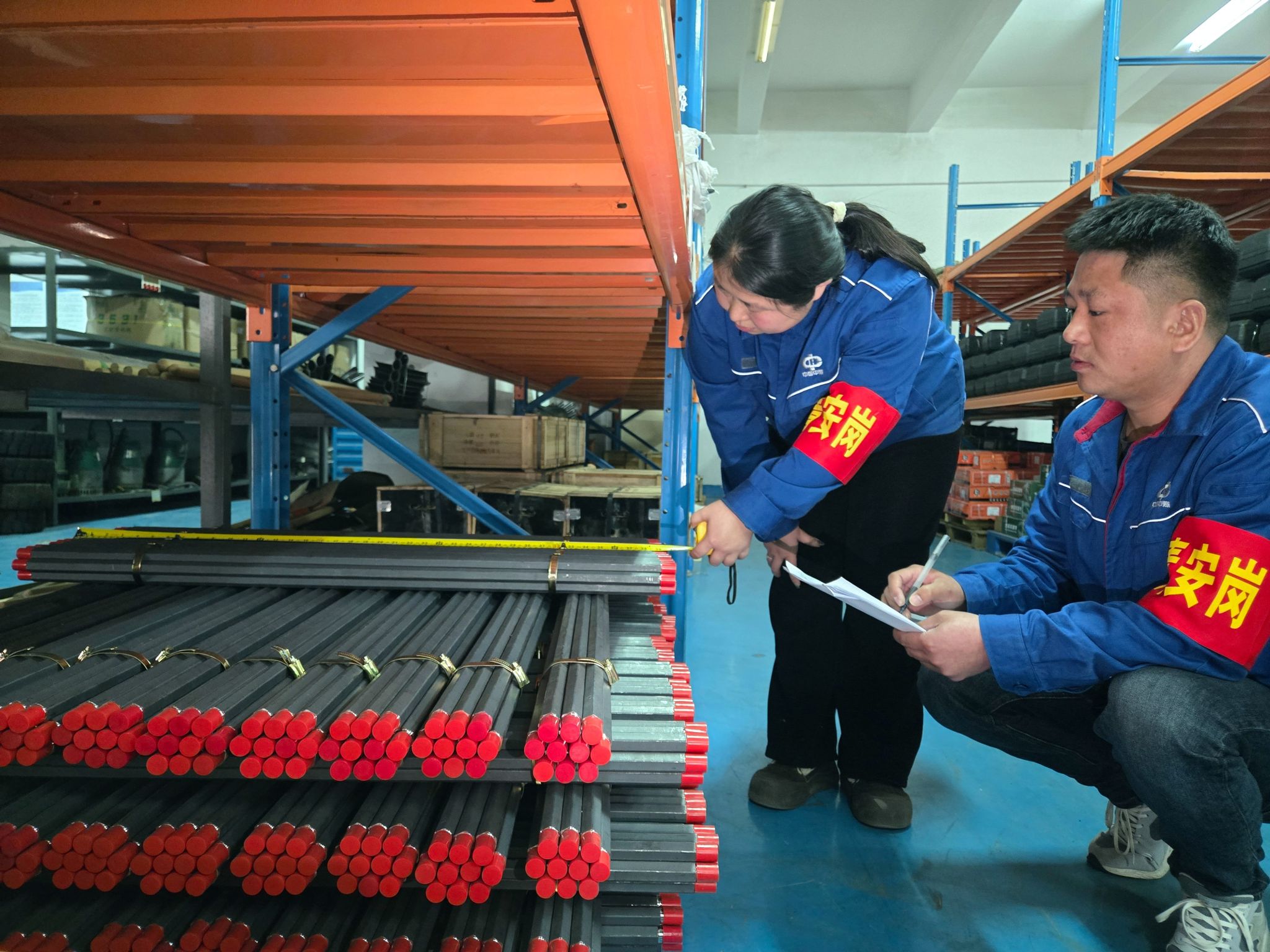 盘存过程中,青安岗员们化身“安全哨兵”,以高度的责任心和严谨细致的工作态度,深入库房、料场等物资存储重点区域,全面启动“拉网式”清点核查。针对库存设备配件、支护材料、工具器具等各类物资,青安岗员们对照账目清单逐项核对,不仅精准核查物资数量、规格型号是否与账目一致,更重点检查物资保管保养质量,查看是否存在受潮、锈蚀、损坏等情况,确保每一件物资都处于合格待用状态。对于木材、焊管、工字钢等库外存放的大型物资,青安岗员们克服环境复杂、数量较多等困难,按不同规格型号逐一排查、分类统计,绝不放过任何一个细节。