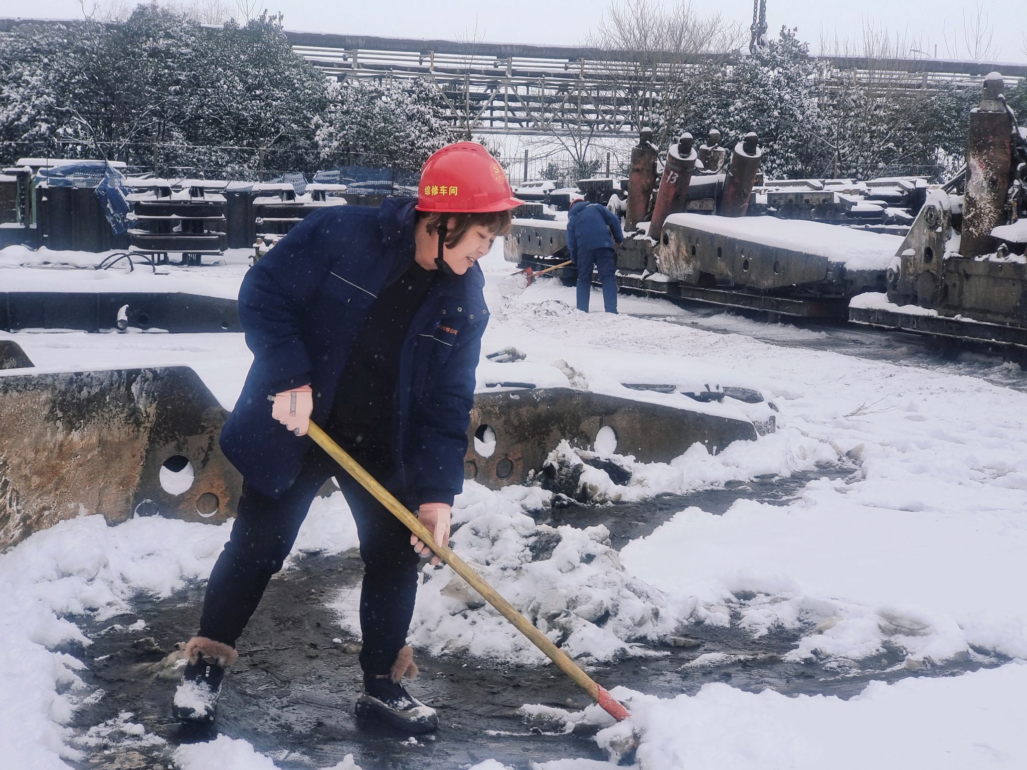 经过近三个小时的连续奋战,车间主干道、出入口、职工通勤关键区域及物资运输通道的积雪冰块被彻底清理干净,为职工安全出行、生产物资顺利转运筑牢了坚实保障。