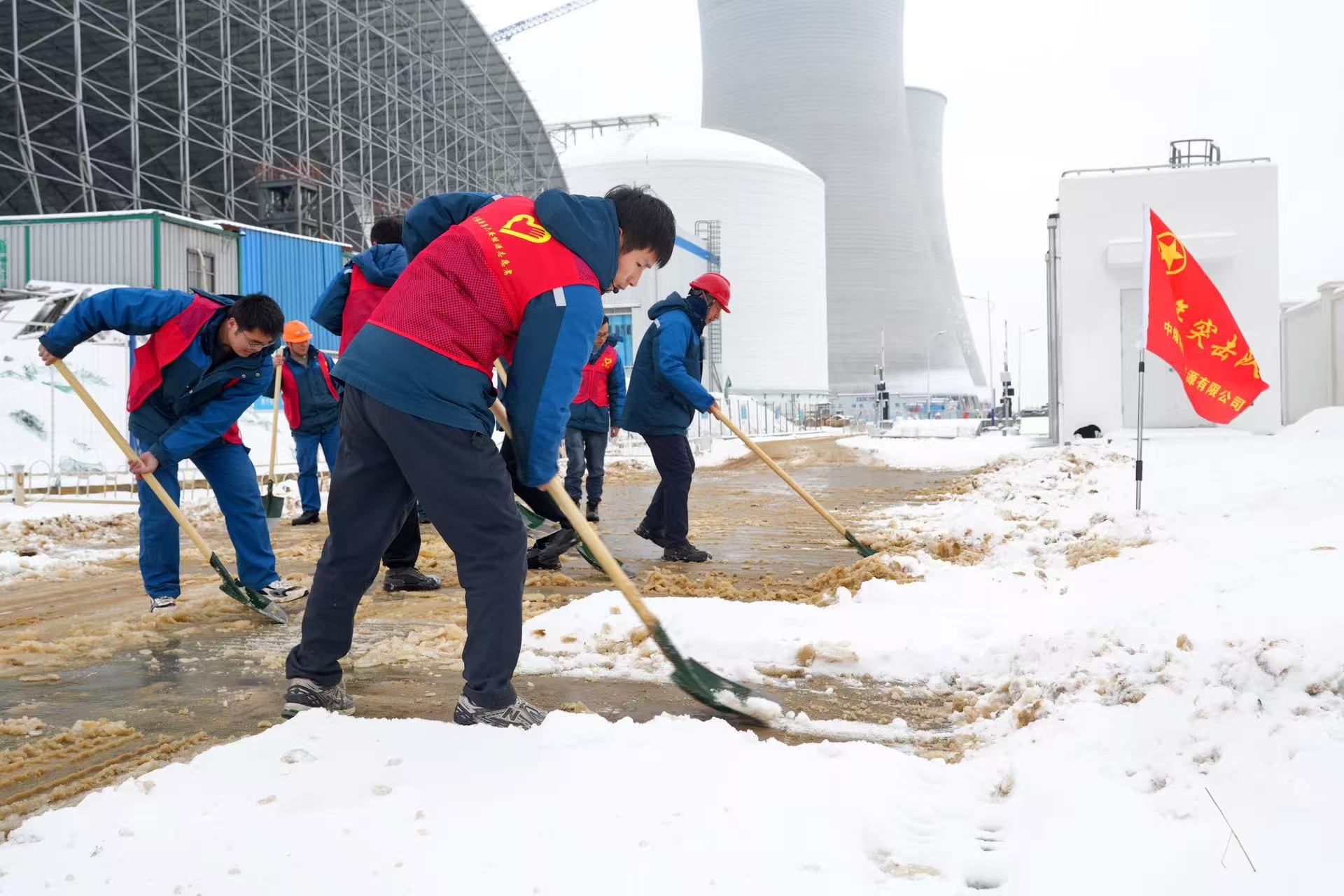 在进厂主干道上,青年突击队员们手持铁锹、扫帚等工具,弯腰弓背、分工协作,有条不紊地清理道路上的积雪与薄冰。大家心往一处想、劲往一处使,有的负责铲除厚雪,开辟通道;有的负责清扫残余积雪,清除路面薄冰。默契配合间高效推进清雪工作,全力保障职工通勤安全与物料运输畅通,为项目办公秩序正常运转、施工调度顺利推进提供坚实保障。