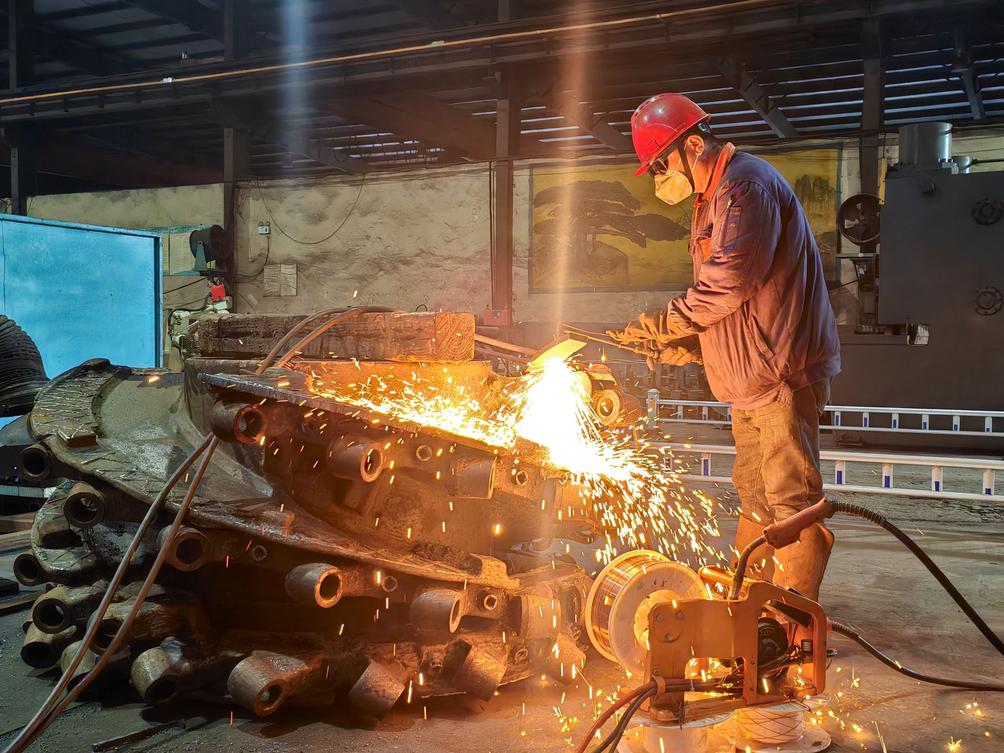 在设备维修公司一矿机修车间铆焊班作业场地,一束束耀眼的焊花照亮厂房,一件件精密的铆焊结构件相继完工。在这个班组,青年职工占比40%,平均年龄不足35周岁。其中既有深耕行业多年、技艺精湛的技术能手,也有刚走出校园、充满闯劲的青年新锐。班组始终秉持“立足岗位、勇于创新、精益求精、攻坚克难”的理念,以解决生产实际问题为导向,将青年的知识优势与青年的创新活力深度融合。