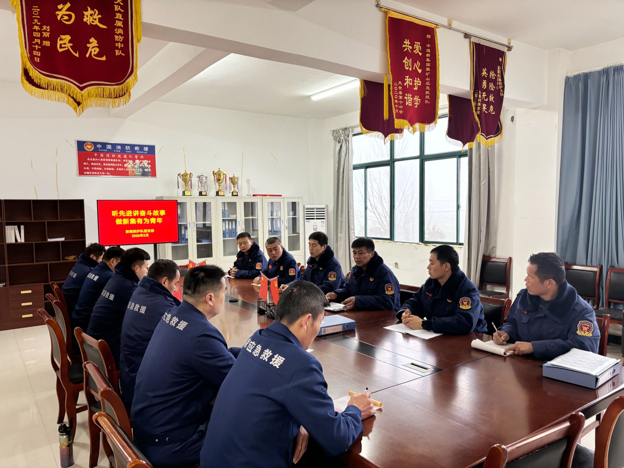 近日,新集救护队团支部组织开展“听先进讲奋斗故事,做新集有为青年”主题团课活动。青年指战员齐聚一堂,聆听先进事迹、感悟奋斗精神,凝聚起护航矿山安全、奉献应急救援的青春动能。