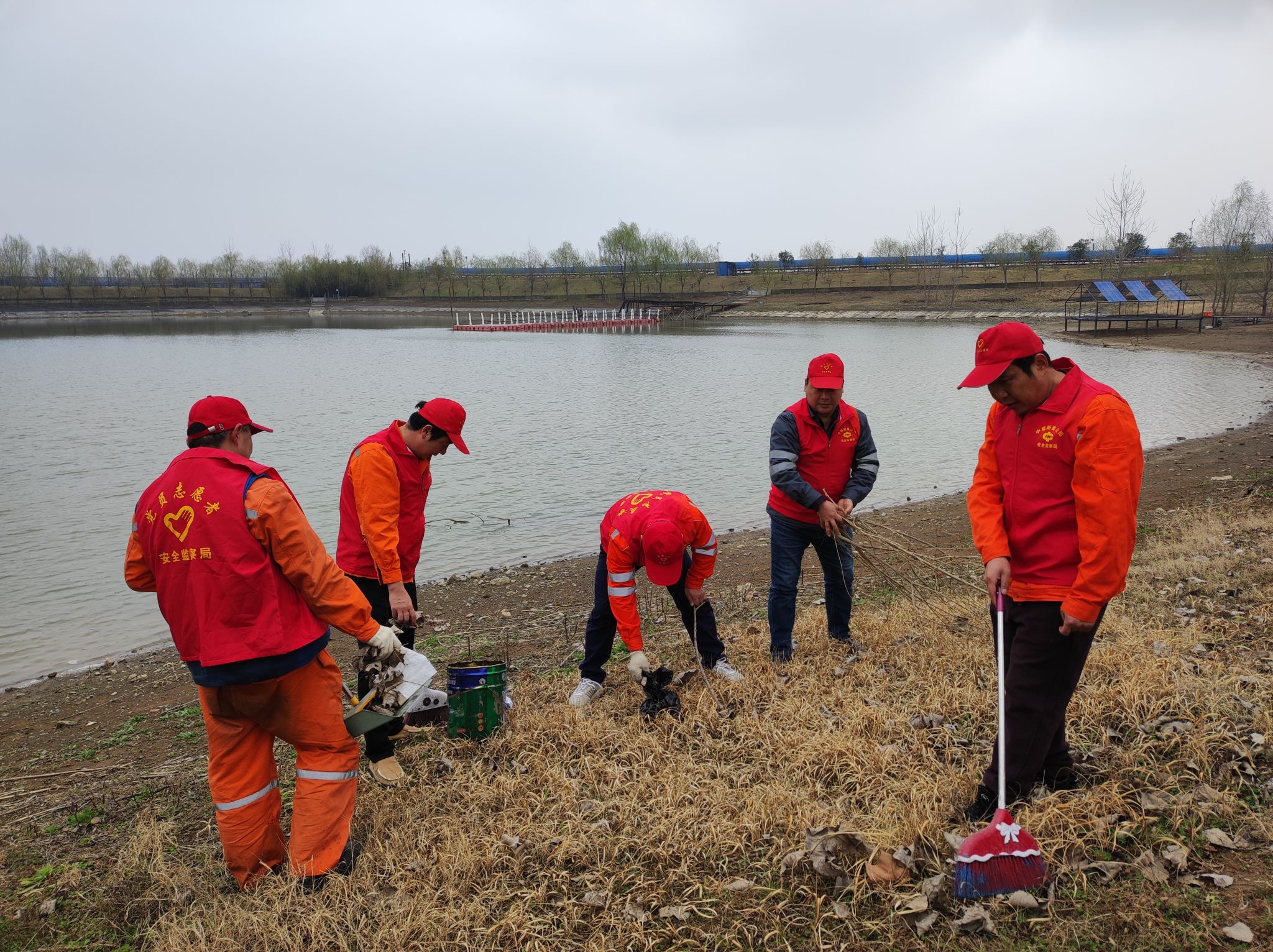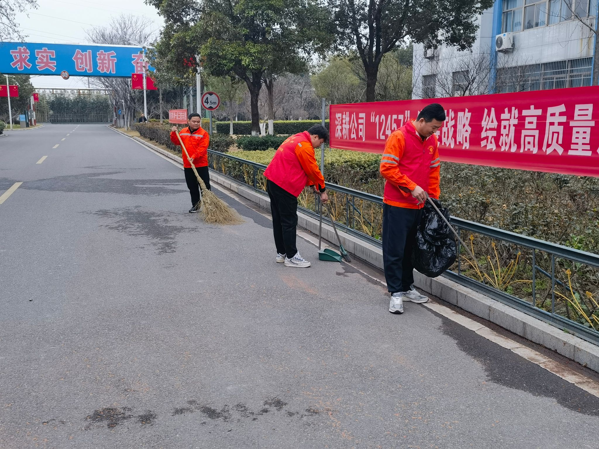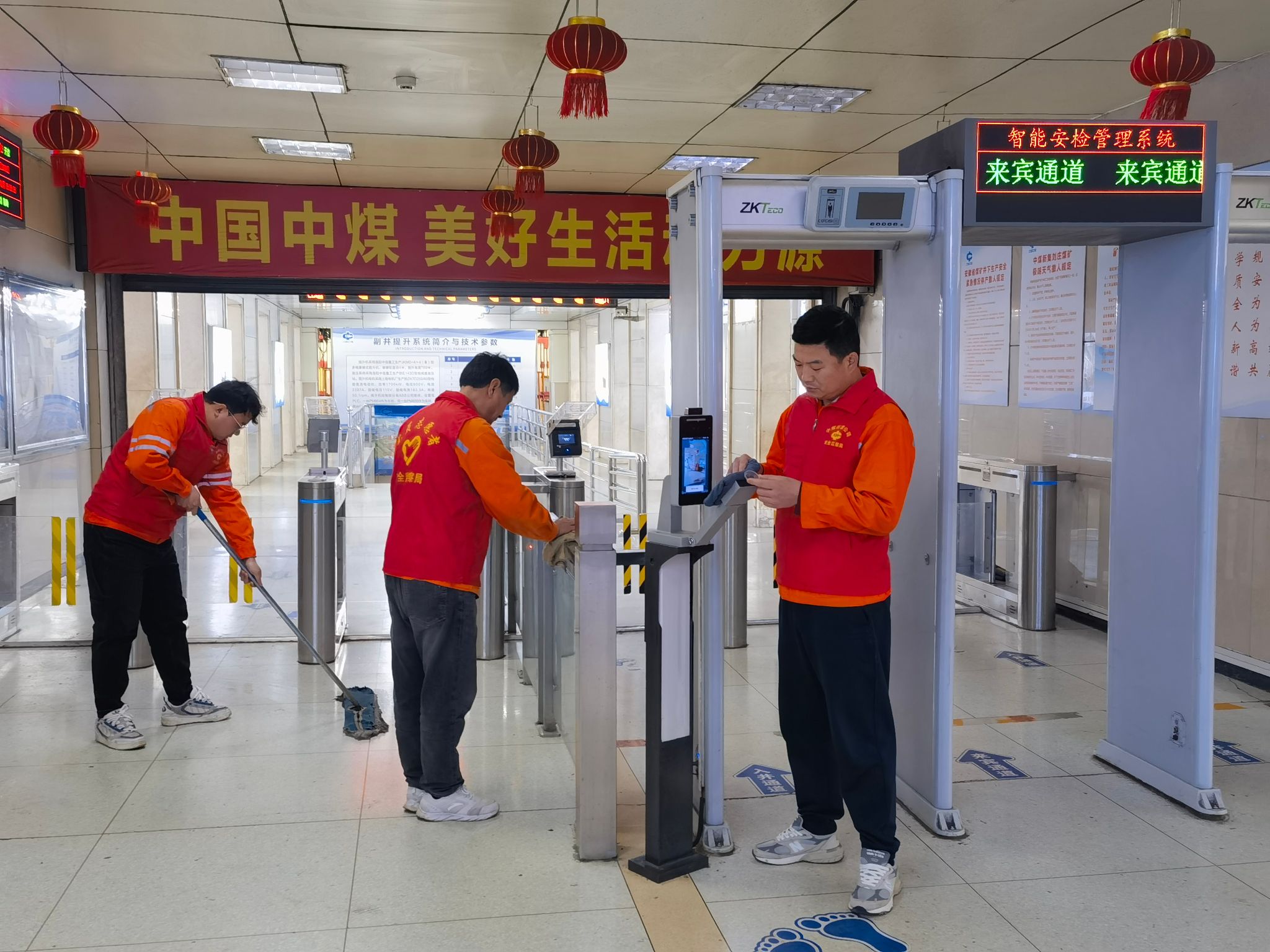 在智能安检通道,志愿者们身着红马甲,分工协作、干劲十足。有的手持扫帚、拖把,仔细清扫地面的灰尘与杂物,不放过任何卫生死角;有的拿着抹布,认真擦拭安检闸机、人脸识别设备等设施,让智能安检系统焕然一新;有的主动协助工作人员调试设备,耐心引导往来人员有序通行,用热情服务筑牢厂区安全防线。“中国中煤美好生活”的横幅下,红色的身影忙碌穿梭,成为初春厂区里一道亮丽的风景线。